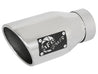 Finish off your custom or stock exhaust system with the Mach Force Xp 409 stainless steel, universal tip designed to fit most 3" exhaust systems. This 9" long, double-walled, slash cut exhaust tip is finished with a high-temperature, metallic black powder coating for corrosion resistance and a custom look. A unique laser-cut aFe Power logo plate is riveted on for brand quality authenticity and has a drain port built in for convenience. Completely adjustable, the tip includes a high quality stainless steel band clamp so there's no modification or wel ding required.