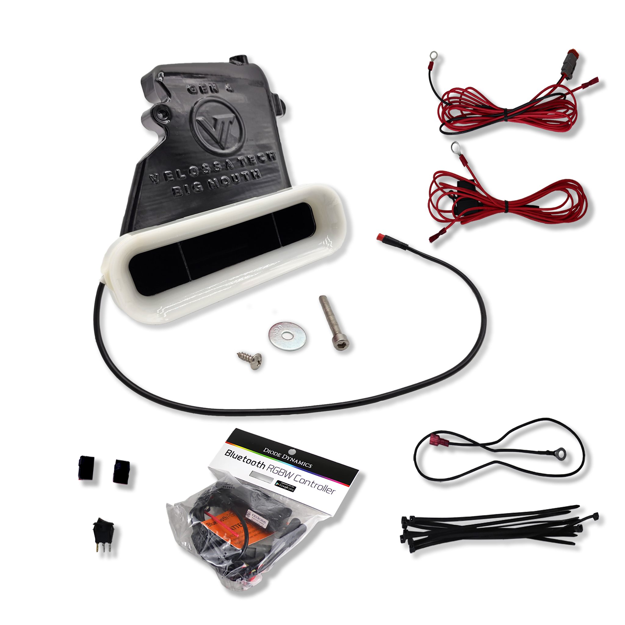 Get LIT with a Velossa Tech "LIT KIT" and blow people away when you light up the night (or day!) with ANY COLOR (RGBW) Bluetooth capability via the Diode Dynamics controller and phone app, no handheld remote needed! RGBW means TRUE white LEDs are dedicated to delivering TRUE white which is something that standard RGB cannot do (RGB can only create a mish mash of colors which creates a milky, subdued white).