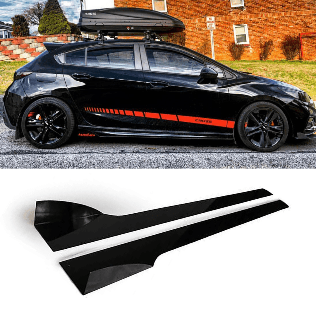 Designed for the 2016–2017 Chevrolet Cruze, these side skirt extensions add a sleek, aggressive profile while improving aerodynamic flow and road presence.