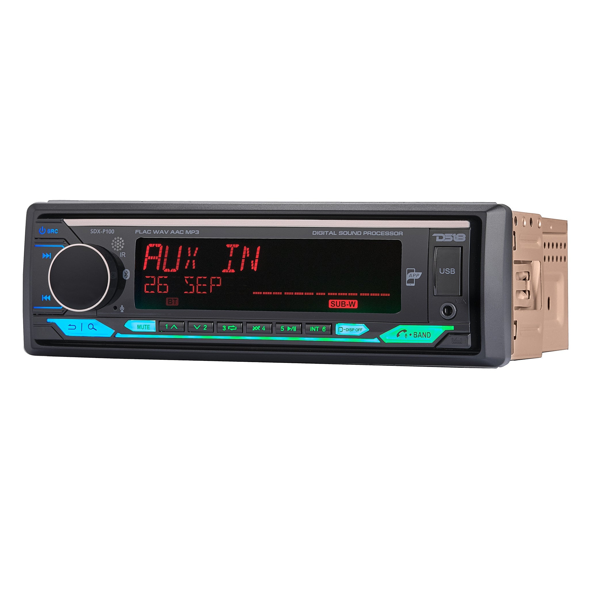 DS18 SDX-P100 Digital Media Receiver | Single Din | DSP | APP | Bluetooth Audio and Calling Head Unit | Aux Input | USB | Mechless | AM/FM Radio Receiver