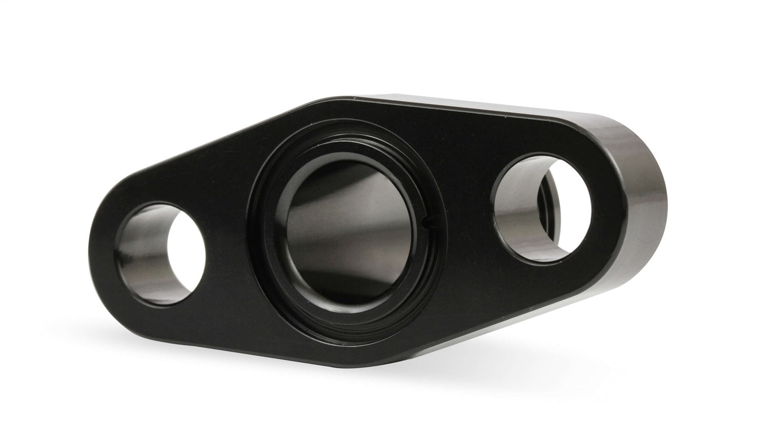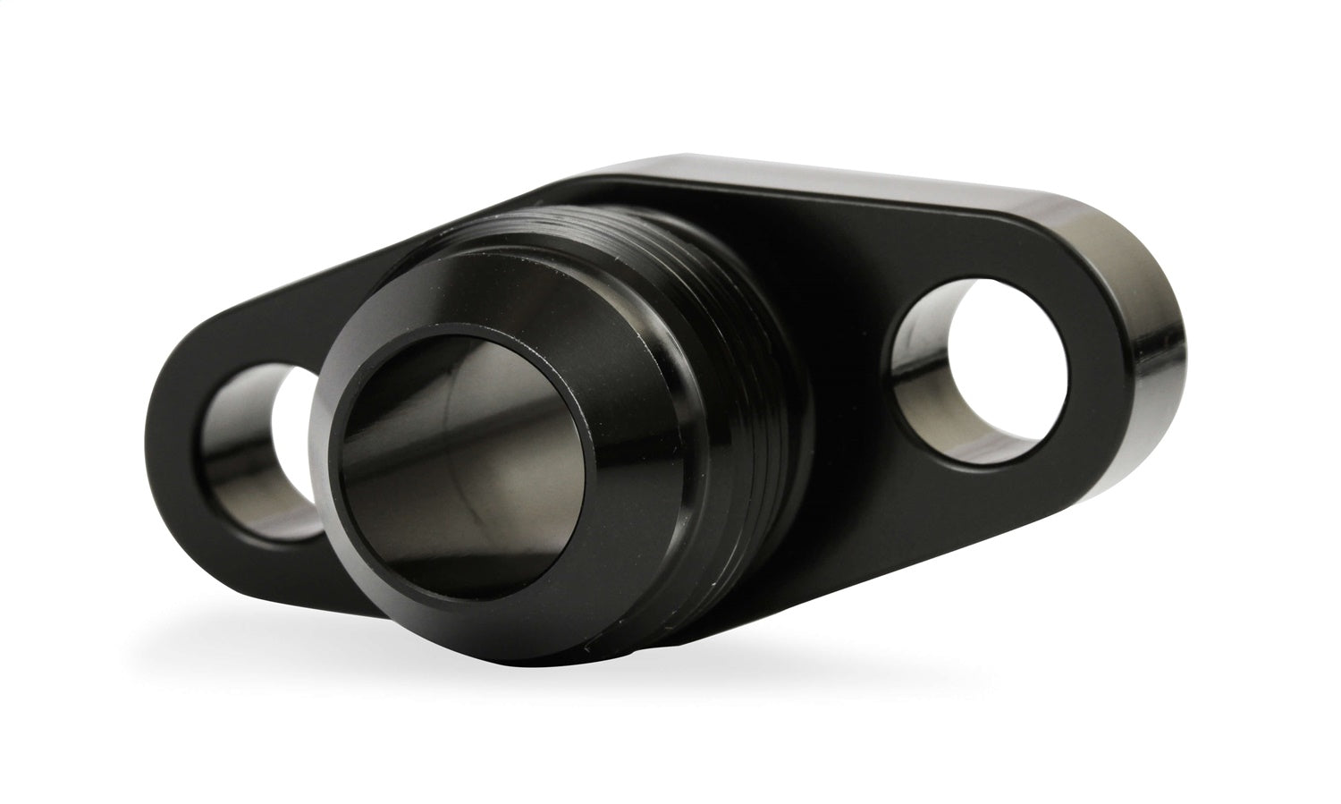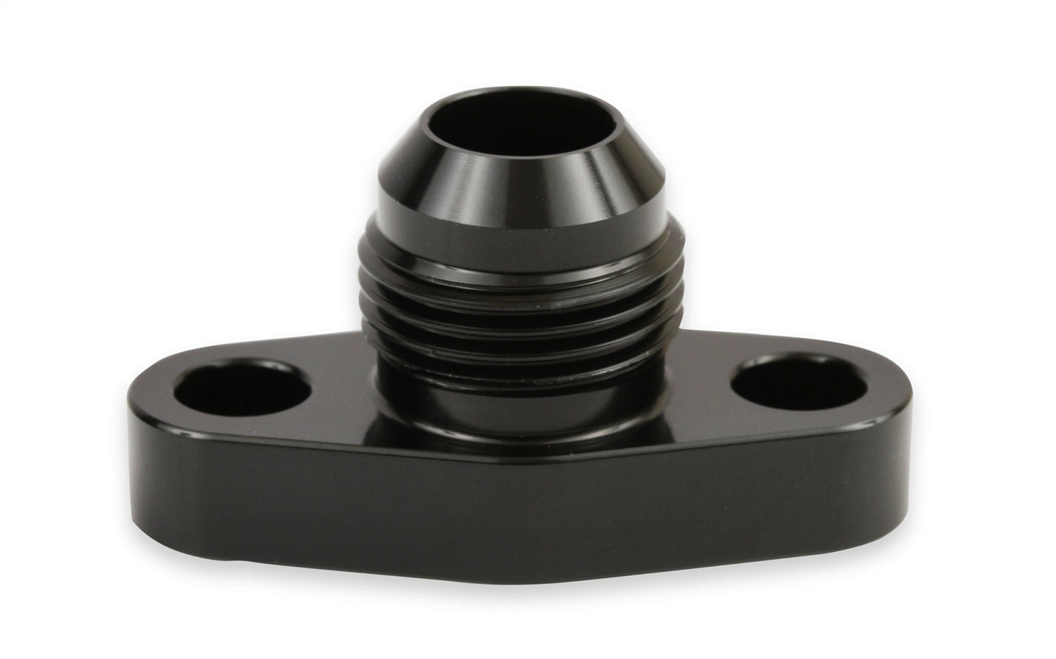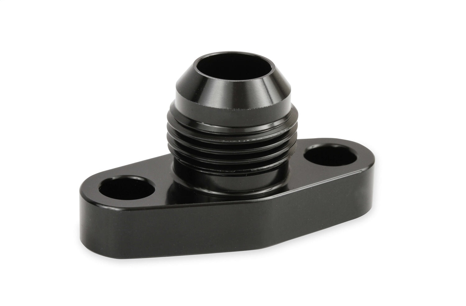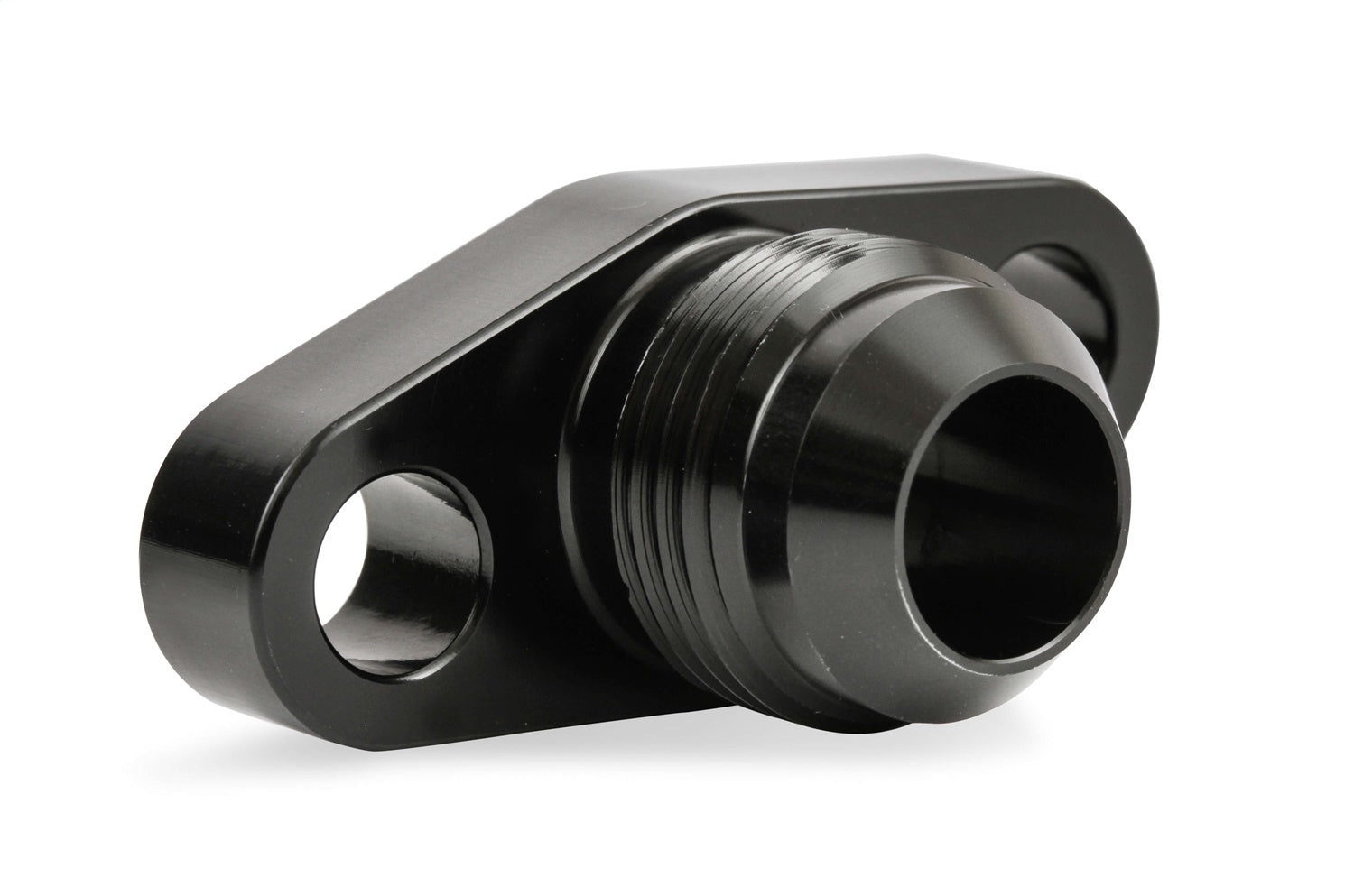 Turbo Oil Drain Flange Fitting, -10 AN Male Flare, Bolt Spacing 1.496", w/ O-Ring Seal, Fits T25, T28, T30, 2024 Aluminum w/ Black Anodized Finish