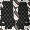 P2M MAZDA FD3S RX-7 race floor carpet mat set with race inspired checkered pattern in dark grey coloring.