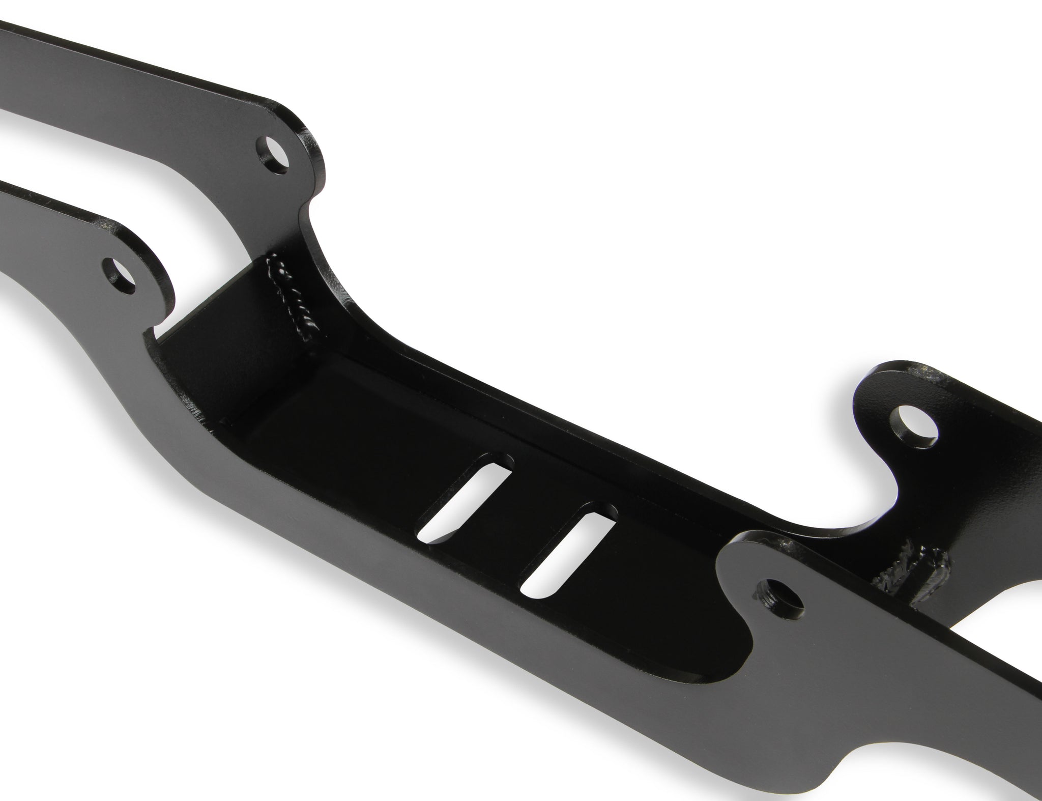 Hooker BlackHeart transmission crossmember is part of the most comprehensive line of GEN-3 Hemi Swap components available for the Mopar B-Body. The BHS532 Crossmember allows the installation of the popular A727 3-speed, NAG1 5-Speed and 8HP70 8-speed automatic transmissions when used with the corresponding adapter plate (sold separately). No cutting or drilling is necessary, Just bolt it in the factory location using the supplied hardware. The modular design allows the use of several different transmission options without the need to buy or fabricate a different Crossmember - simply change to a different adapter plate and the drive line and u-joint alignment have been preset to the corresponding transmission. BHS532 Crossmembers are designed to use a popular and inexpensive GM style transmission mount for its compact design that allows for better ground clearance than the factory crossmember (Hooker part number 71223029HKR or 71223030HKR - sold separately). Solid 3/16" Steel construction and Black coated finish provides long lasting performance and good looks.
