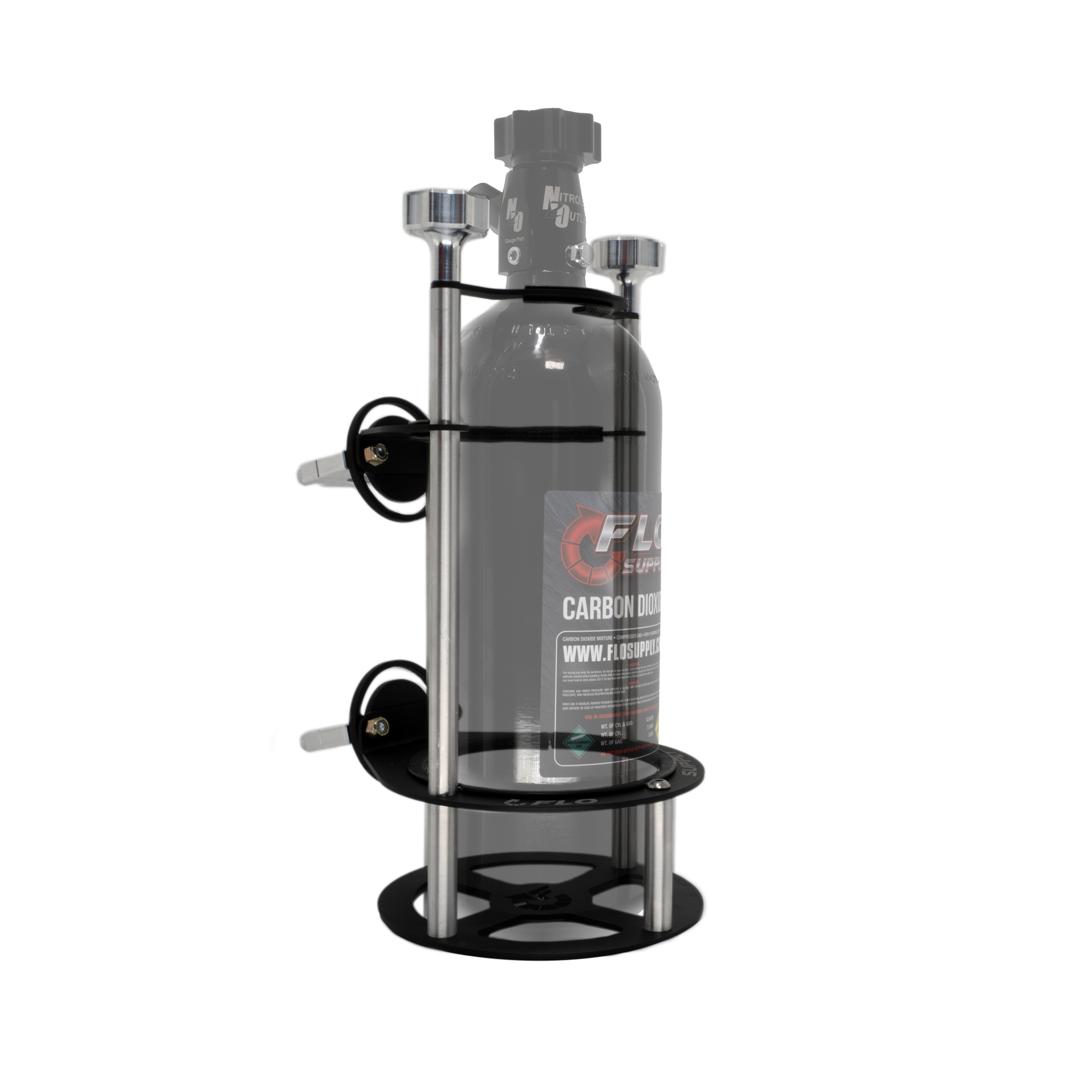 The Race-Light Bottle brackets are constructed of light-weight powder coated aluminum, 6061 Billet aluminum, and stainless-steel fasteners with a flexible edge trim to protect the bottle from scratches.