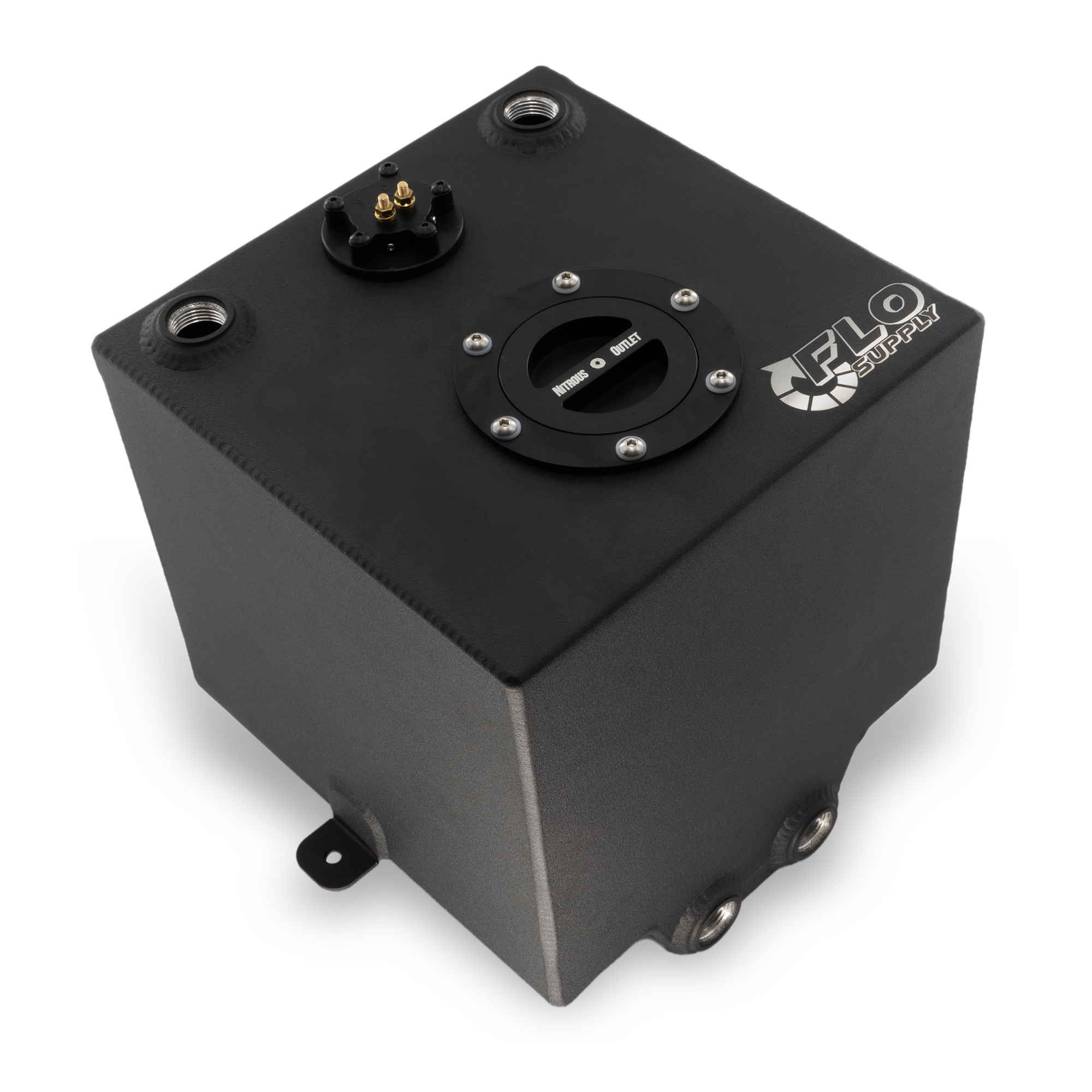 Flo Supply Aluminum fuel cells are manufactured from 5052, .090 thick aluminum and tig welded for maximum strength. These lightweight fuel cells are designed to be compatible with gasoline, diesel, & E85 fuels. The built in Internal baffling system helps aid against fuel slosh. The 12AN ORB Female bungs provide the ability to install an assortment of different size fuel feed, fuel return, and tank vents fittings. Available with or with out a 0-90 ohm fuel level sending unit.