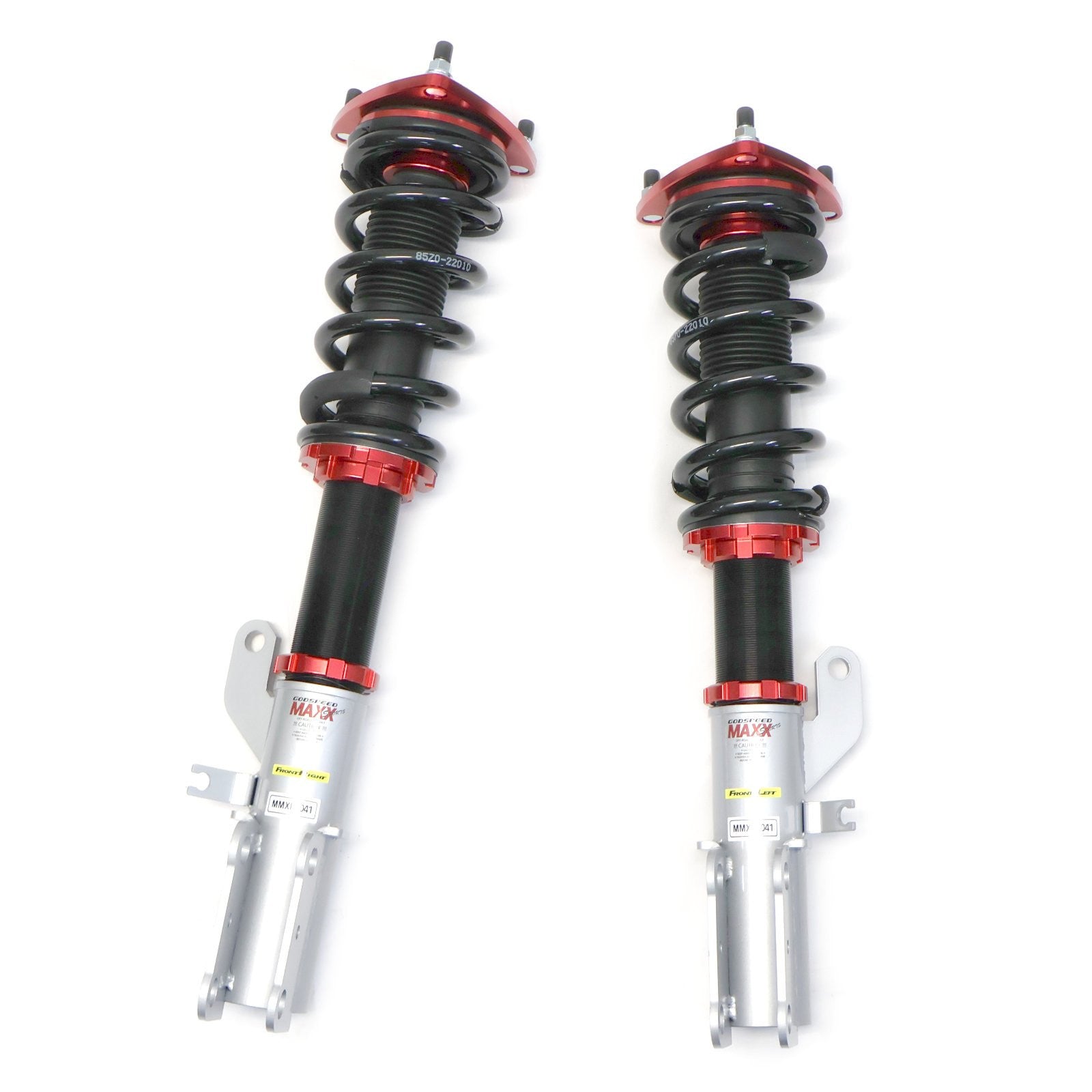 Godspeed Project's MAXX Sports line is engineered to be a more track-oriented coil-over system. Utilized "Inverted" mono-tube shocks to replace where MacPherson struts are used for better rigidity. All mono-tube shocks are finished with anti-corrosion coating and special valving that allows 20-level adjustments to control the rebound damping force. Pillow ball top mounts on four corners provide a far more precise feel from the suspension and steering. High-rigidity steel coil springs provide more control and quick steering to improve the vehicle's overall handling. Aluminum hardware is used where applicable to reduce overall weight.