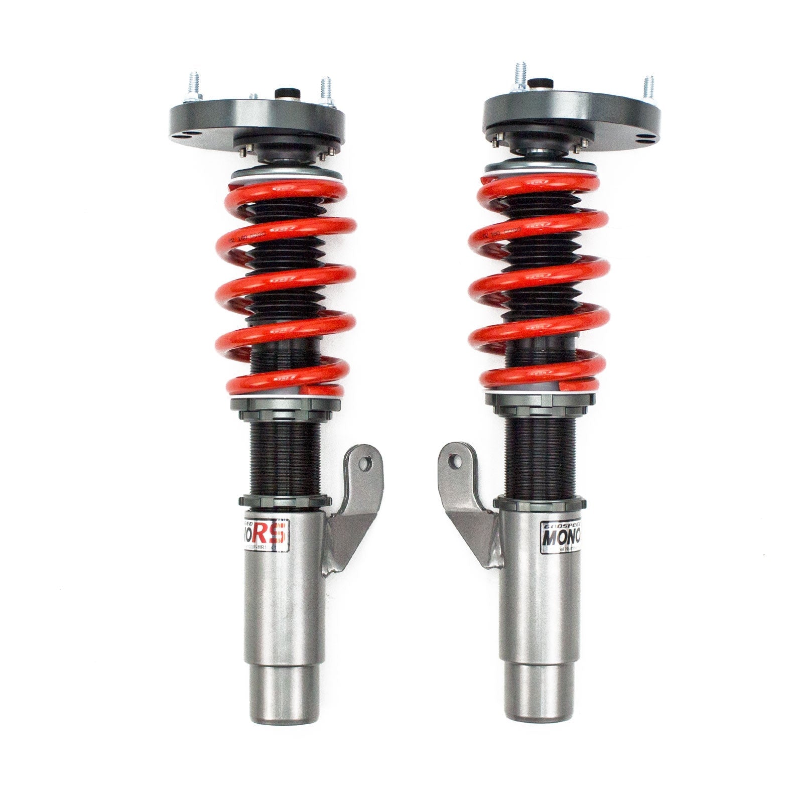MonoRS Coilover damper kit by Godspeed Project are an intermediate suspension upgrade setup for daily and Sunday club racing. Lowering your car with improved springs over factory and paired with Monotube shocks with valving that allows 32 levels of rebound adjustment to improve handling without sacrifice comfort. Ride height can easily be adjusted by twisting the lower mount bracket. In order to keep weight gain at the minimum, most of attachments and accessories are CNC machined from billet aluminum. Koyo bearings are used when camber plate top mount is applicable depends on car models. To assure that our customers are getting high quality products, MonoRS coilovers are covered by 12 months limited warranty by the manufacturer from top to bottom just like other big brand name setups.