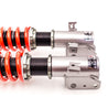 MonoRS Coilover damper kit by Godspeed Project are an intermediate suspension upgrade setup for daily and Sunday club racing. Lowering your car with improved springs over factory and paired with Monotube shocks with valving that allows 32 levels of rebound adjustment to improve handling without sacrifice comfort. Ride height can easily be adjusted by twisting the lower mount bracket. In order to keep weight gain at the minimum, most of attachments and accessories are CNC machined from billet aluminum. Koyo bearings are used when camber plate top mount is applicable depends on car models. To assure that our customers are getting high quality products, MonoRS coilovers are covered by 12 months limited warranty by the manufacturer from top to bottom just like other big brand name setups.