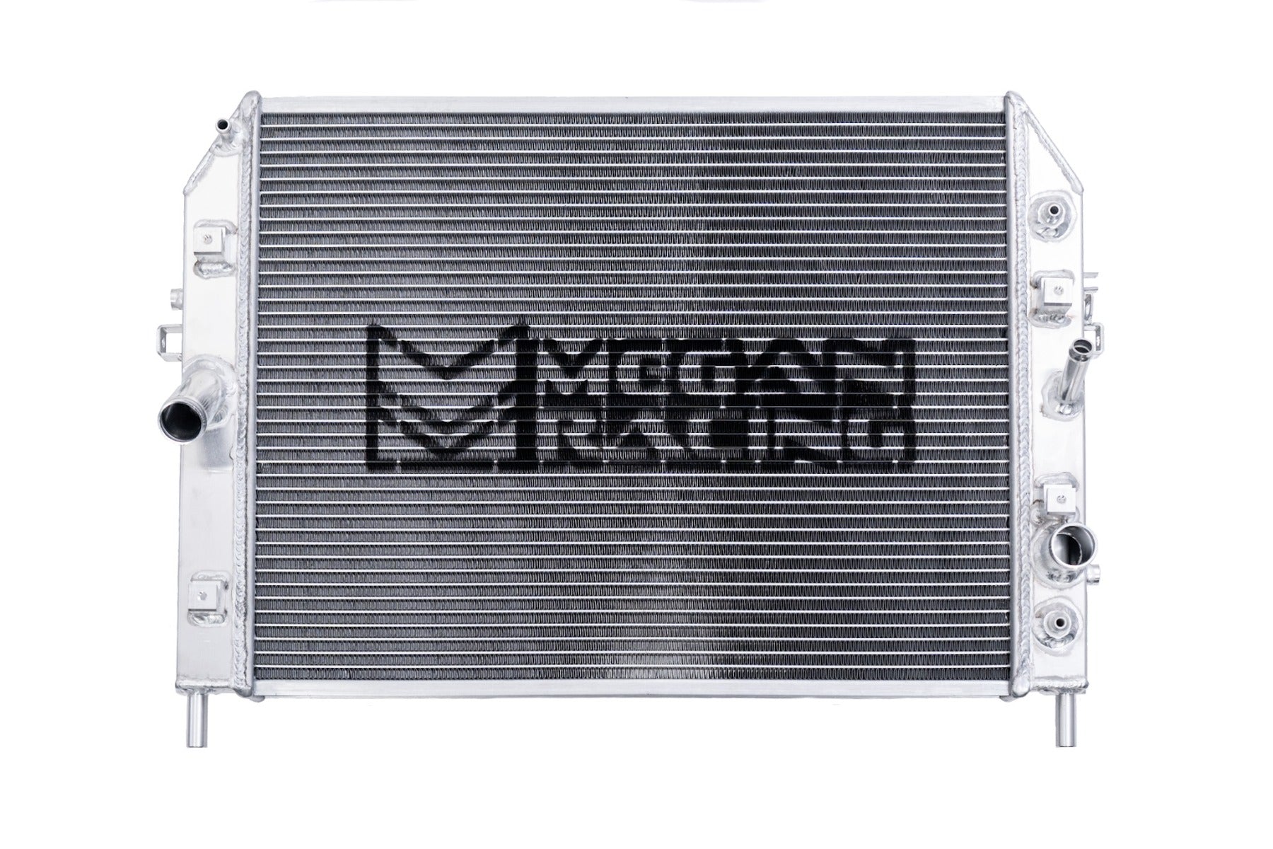 Megan Racing Radiators are comprised completely of aluminum. From the tanks to the primary core. Aluminum tanks are a great upgrade over the plastic usually found on factory radiators which are known to crack and leak especially as they age. The larger heat exchanging core is not only more efficient at transferring heat from the coolant, but also increases total coolant carrying capacity.
