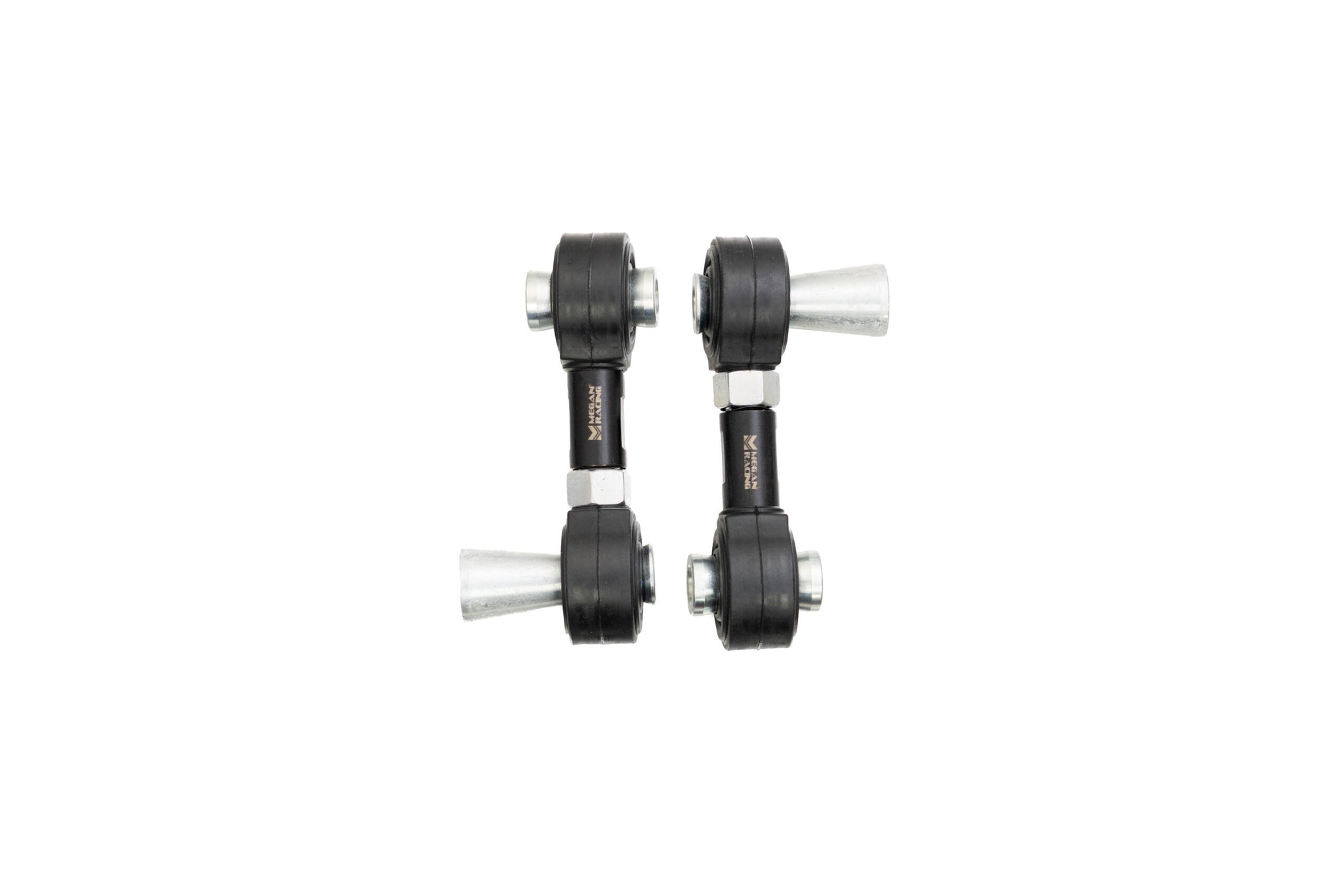 Megan Racing Adjustable sway bar end-links allow for the correction of the sway bar angle when the vehicle height is altered from OEM. Equipped with spherical bushings, our end-links are not only designed to withstand stiffer sway bars but replace the OEM rubber bushing increasing the efficacy of the bar as well.