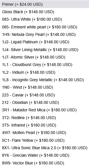 • Options of: Primer-coated, color-matched to your vehicle paint code, or hydro-dipped,