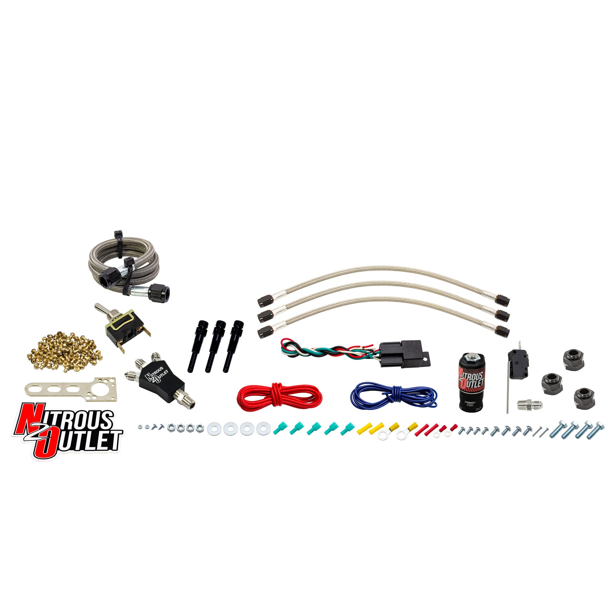 Complete System. This system includes all of the necessary components; 1 nitrous solenoid, 3 nozzles, jetting for 30-90HP, hardware, and electrical to install a direct port nitrous system capable of adding up to 200HP to your bike or ATV.