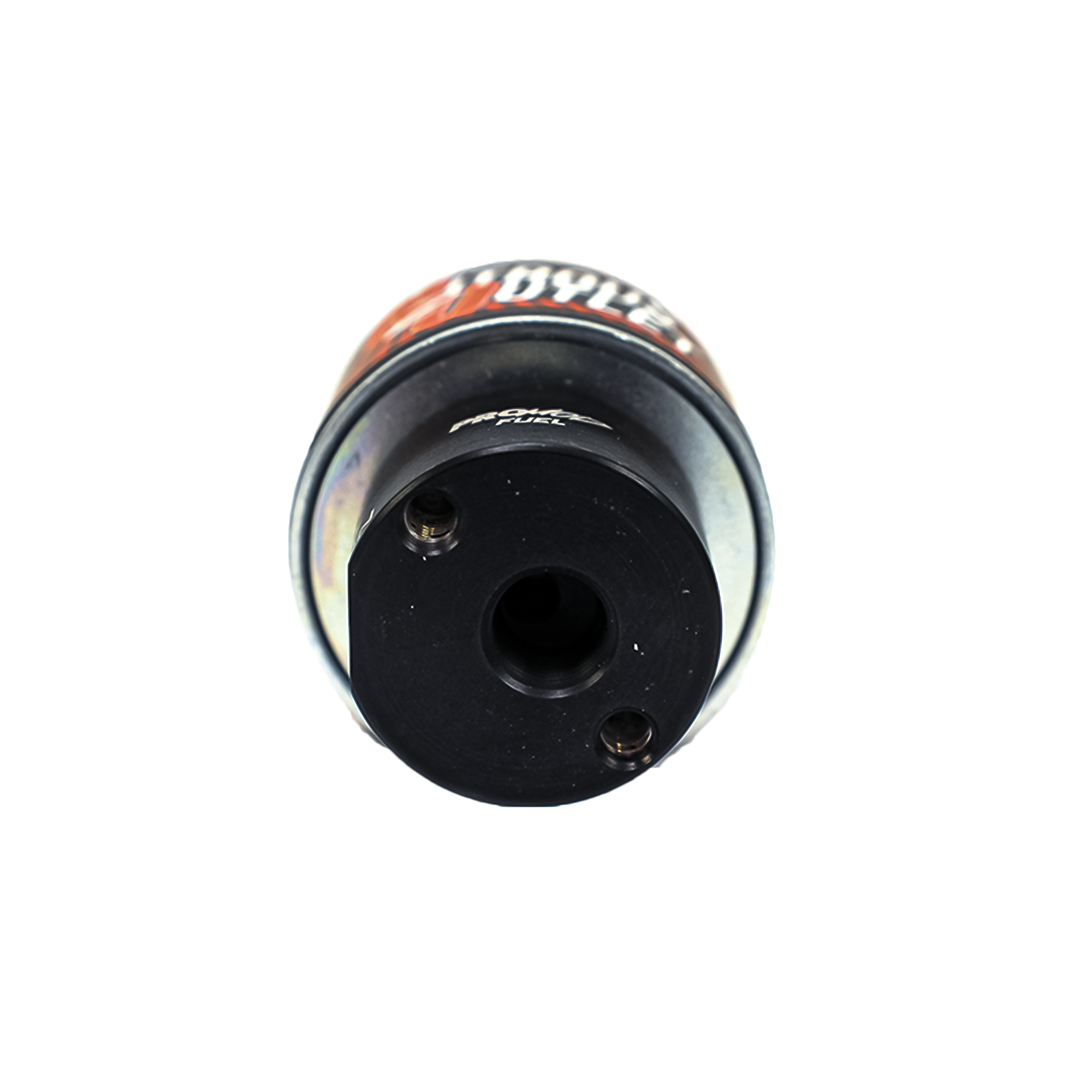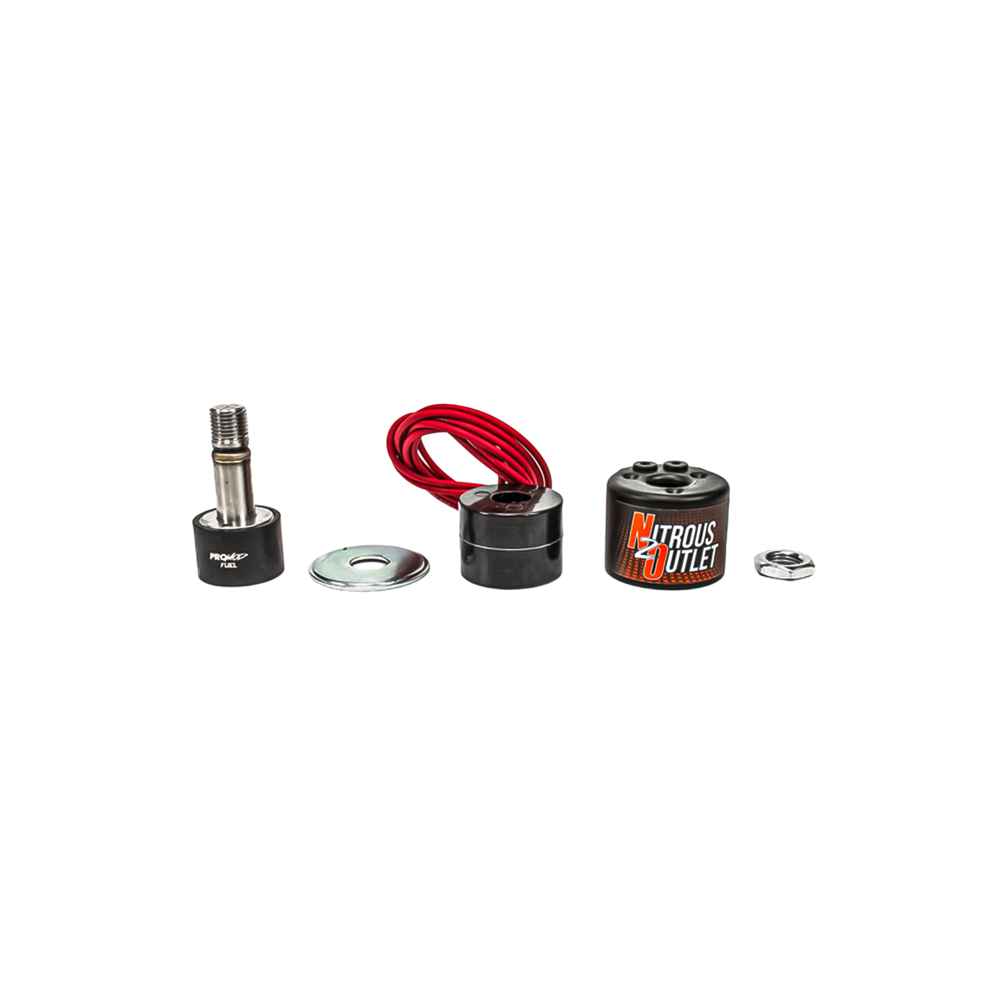 ProMod Fuel Solenoids feature a 2-port design - inlet and outlet. The inlet port is 1/8"NPT thread with a coarse screen filter to keep larger debris from entering the solenoid. The inlet port is clearly marked on the solenoid body with a laser etched IN. The .177" orifice outlet port is located on the bottom of the solenoid and has 1/8"NPT threads. Seal all fittings screwed in to the solenoid body using blue Loctite 246.