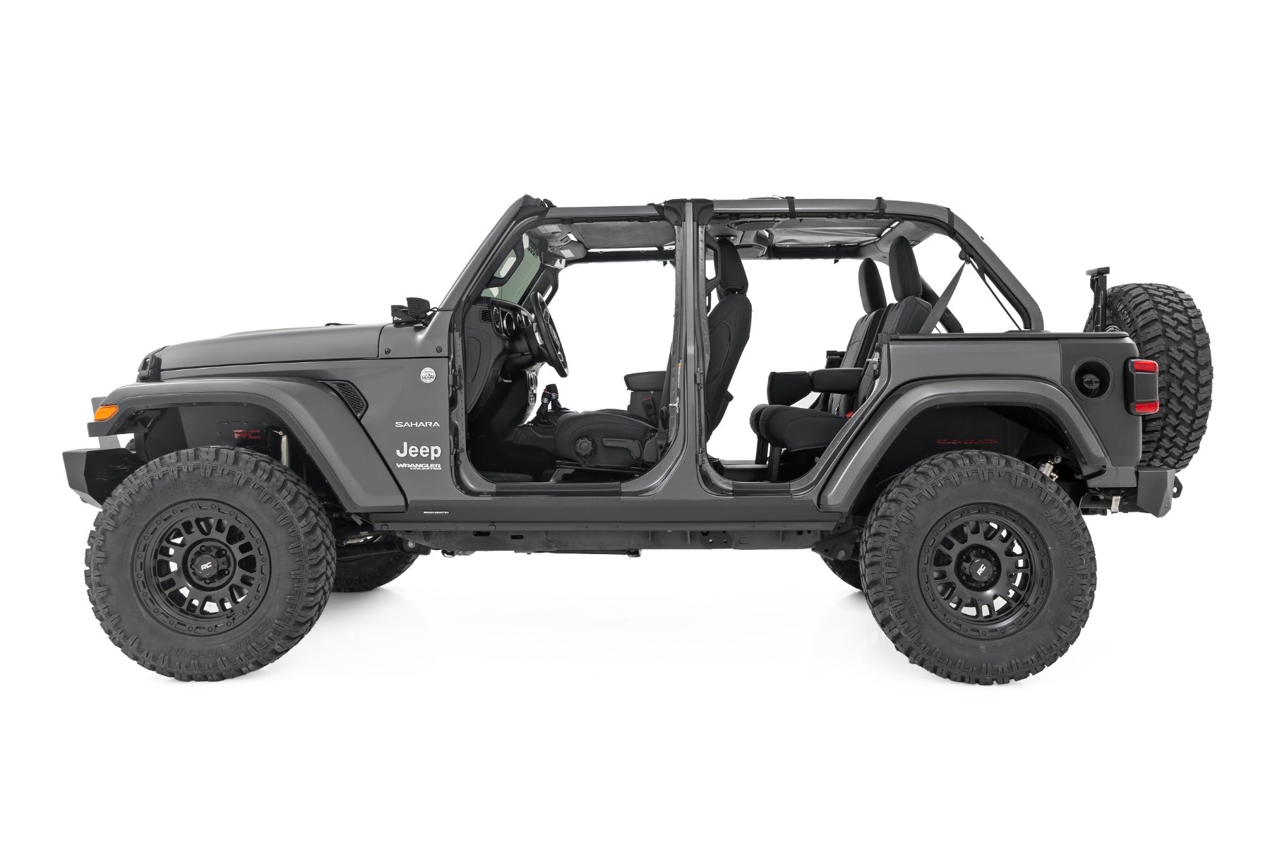 When you're hitting the trails in your JL, the last thing you want is to worry about dings, dents, and scratches on your rear corners. Those tight spots, rocks, and branches can do some real damage. Rough Country Rear Corners are designed to protect your rig from the rough stuff so you can focus on the adventure without any worries.Solid Protection: Built from high-density thermoplastic, our Rear Corners are tough enough to handle whatever the trail throws at you. Keep your rear panels safe from nasty rock hits and rugged trail wear.UV Resistant: Made from high-density thermoplastic that's tough as nails and UV protected to keep it looking fresh even after years of off-road adventures.Quick and Easy Install: No drilling neededΓÇöjust use the included 3M automotive adhesive for a quick install. And if you ever need to go back to stock, they're easy to remove without leaving any damage behind.3-Year Warranty: Built to last, these Rear Corners come with a 3-year limited warranty to back up their durability.These Rear Corners are perfect for anyone who loves pushing their Jeep to the limit but wants to keep it looking good while doing it. Whether youΓÇÖre dodging rocks in Moab or just fending off rogue shopping carts, weΓÇÖve got you covered.