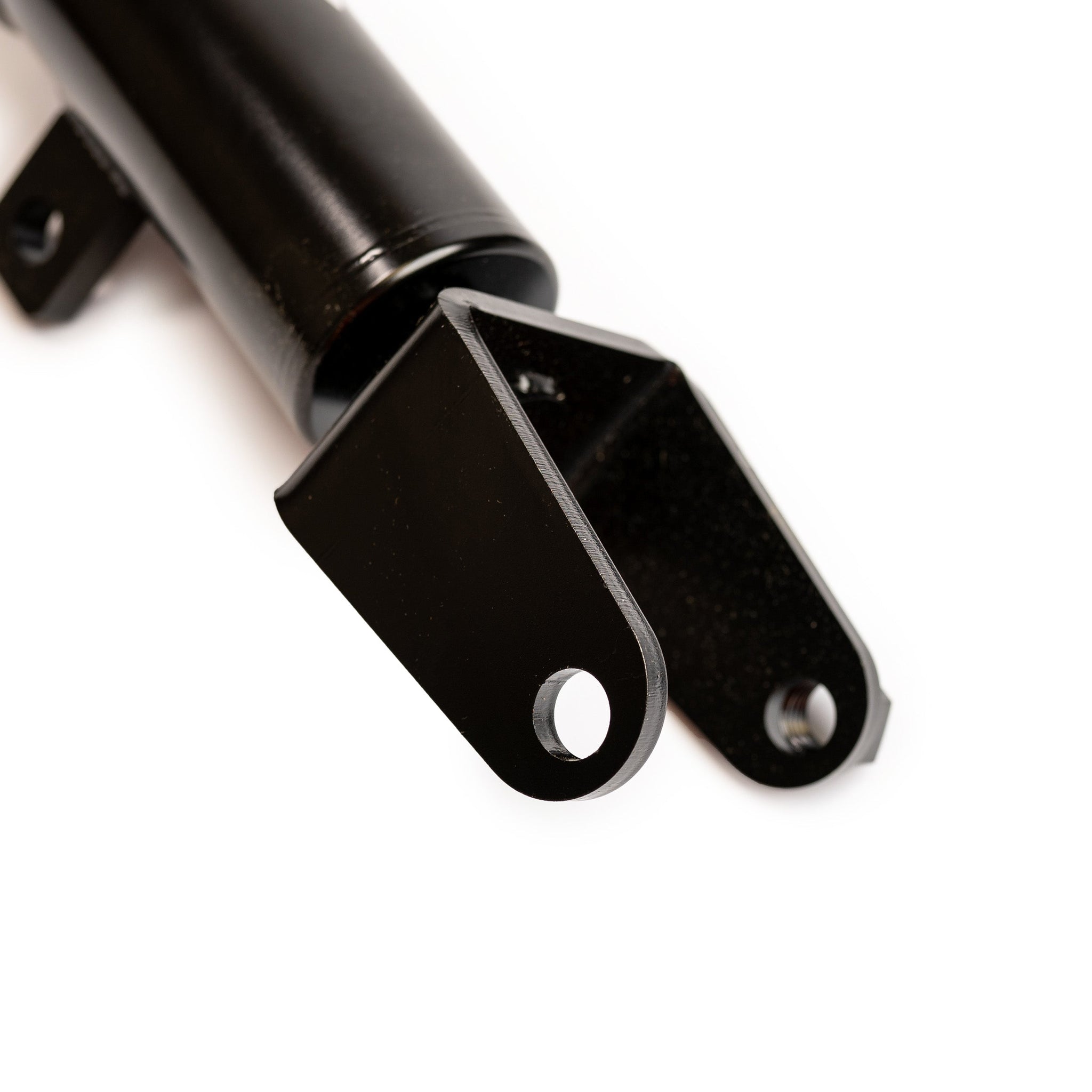 • Height adjustability is provided by the lower bracket which prevents the need to adjust the spring perch or preload, offering the maximum possible travel regardless of height setting.