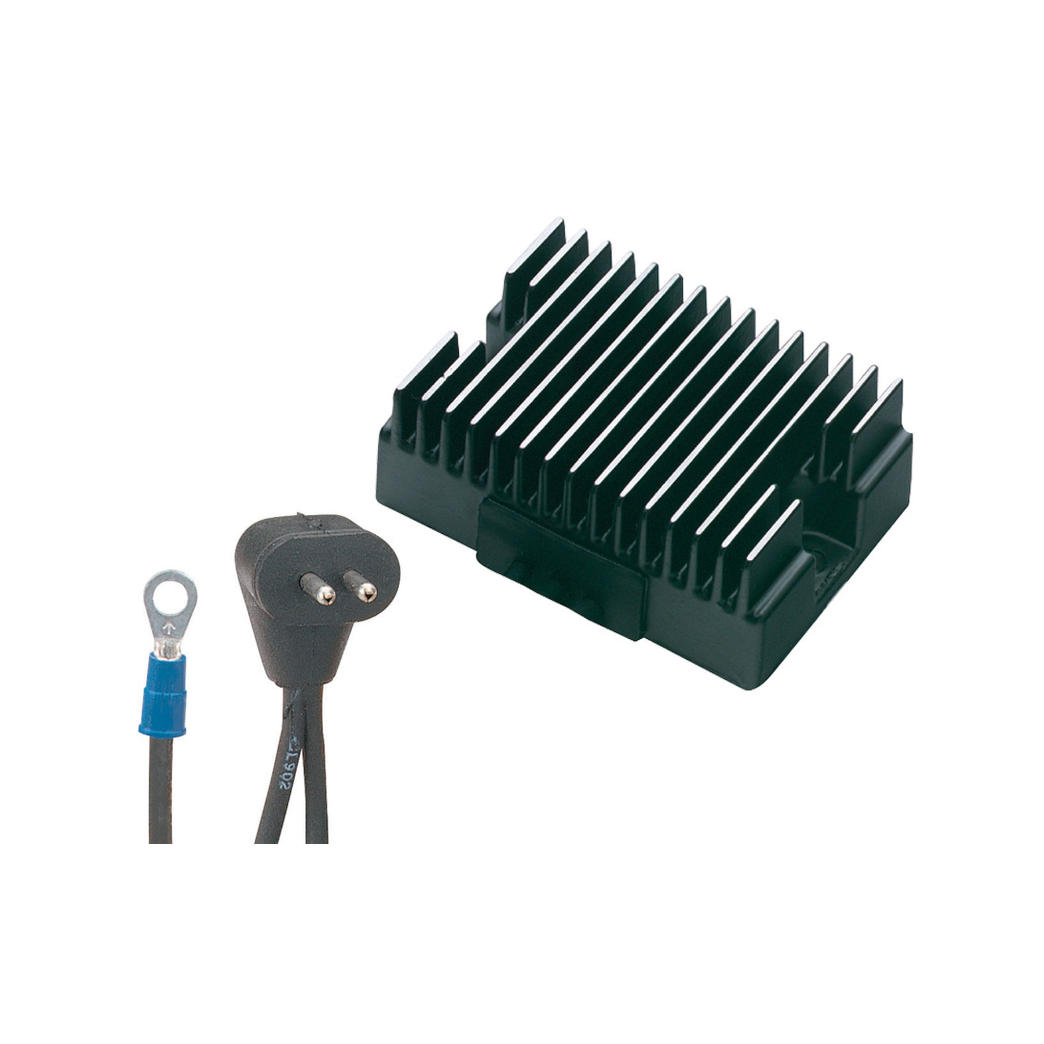 ACCEL Motorcycle electronic voltage regulators do not require any re-wiring or special mounting. Heavy Duty solid-state circuitry and years of technology produce a regulator that has quality second to none and reliability that you can depend on year after year. They are made in the U.S.A. and are covered by a limited replacement warranty.