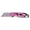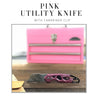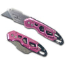 Ergonomic Stainless Steel, Lightweight, Foldable Pink Utility Knife with Carabiner Clip and Fast-Change Blade - DT5017P