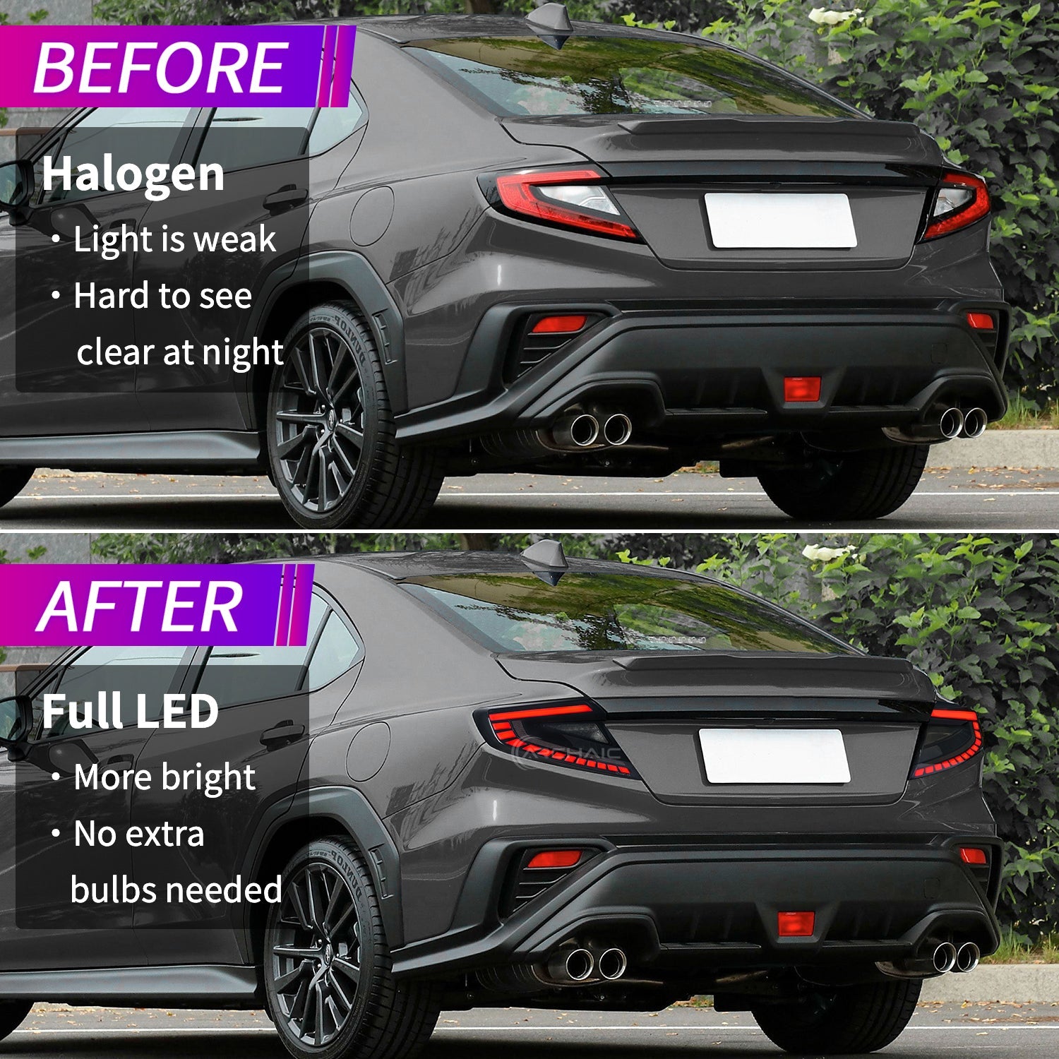 ✅【Better visual effect】Start animation, flashing in sequence. LED taillights with start animation and sequential turn signals, animated DRLs ensure that your WRX is visible to other drivers in different directions on the road. It looks cooler and shinier, and is a great modification and upgrade replacement for the original taillights.