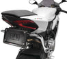 Model specific precision laser-cut stainless steel bracket tucks discreetly under the tail section of the motorcycle