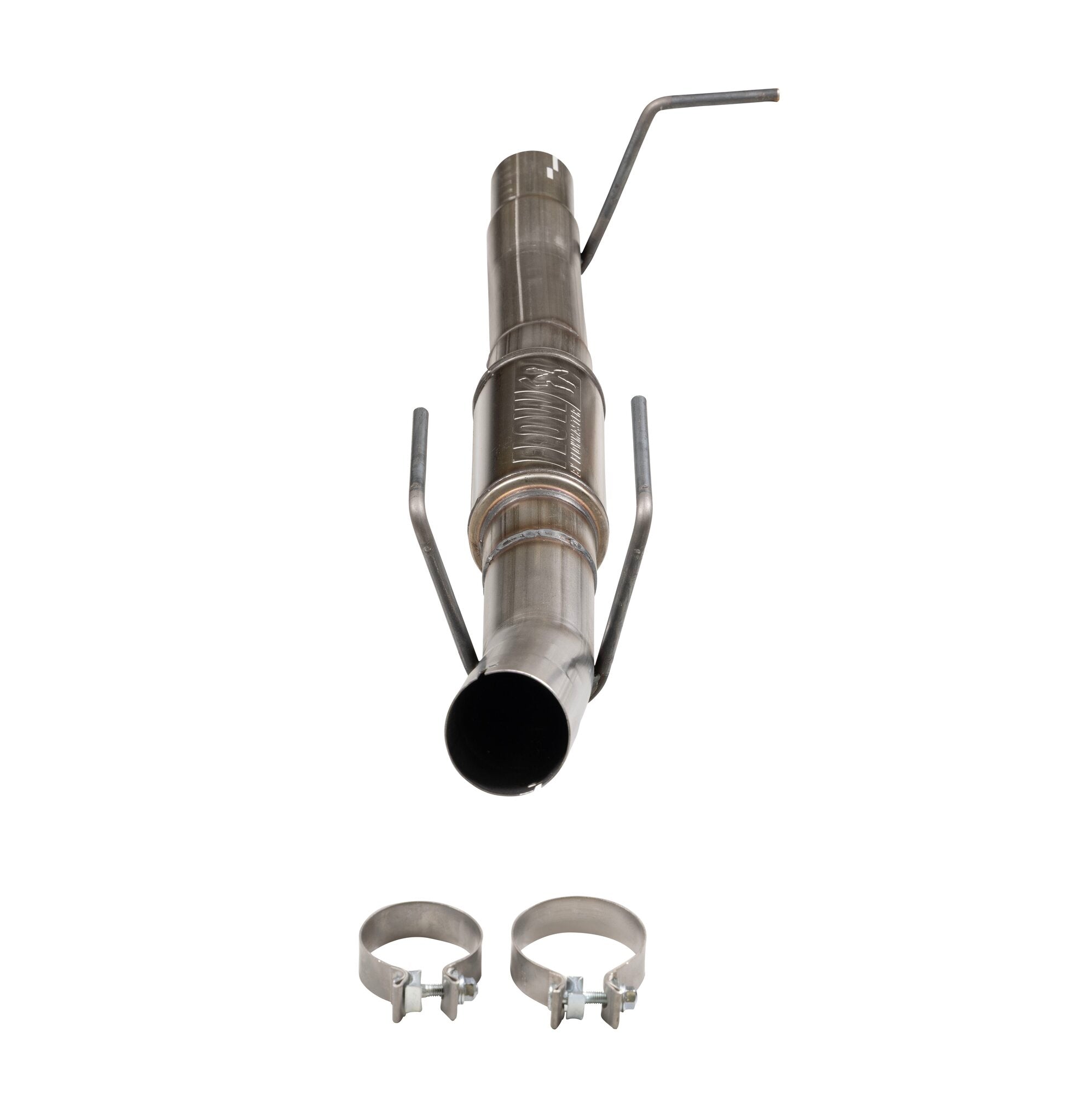 Flowmaster's® FlowFX Direct-Fit Muffler exhaust system for the 2017-2026 Ford F250/F350 Super Duty trucks with the 6.2L, 6.8L and 7.3L gas engines gives you a great value packed way to help you customize your Ford truck to your personality. This performance muffler system fits both 2/4 Wheel drive models and is manufactured from 409 stainless steel for years of trouble-free service and performance. Features include a 3.50-inch inlet pipe leading into a 409 stainless steel Flow FX series "straight-through" muffler for great sound and maximum performance. The muffler then connects to the factory tailpipe for a simple and effective performance upgrade. Max dyno gains of 12 hp and 11 lb-ft at the rear wheels delivers power you can feel. This results in better acceleration and towing performance. The system uses all the factory hanger locations and connections for an easy installation that you can do at home. Kits include installation instructions and all necessary hardware. Backed by Flowmaster's Lifetime Limited Warranty.