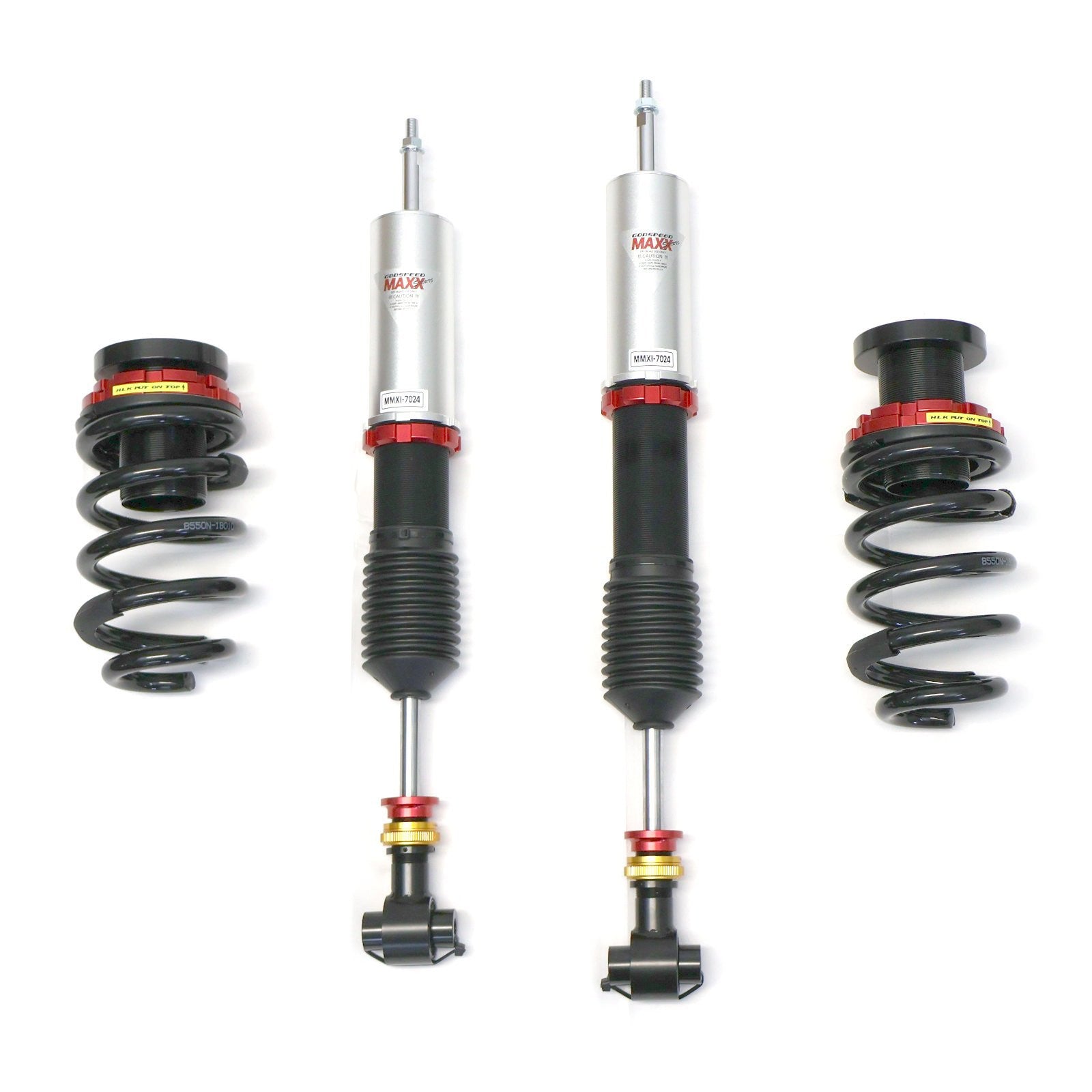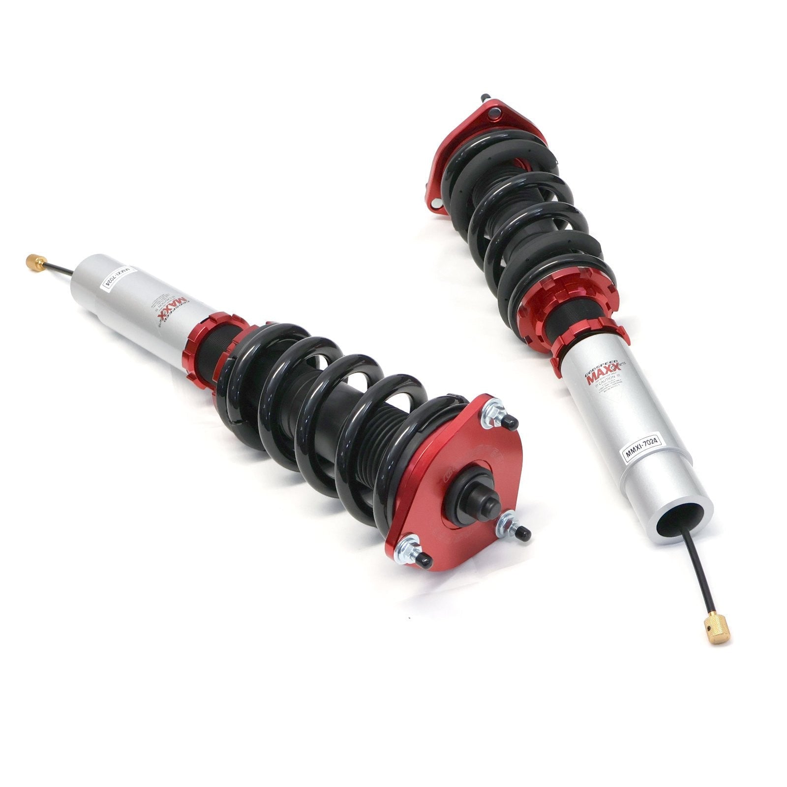 Equipped with Pillow Ball Top Mounts, the MAXX coilovers provide precise feedback from the suspension, giving you better control over your vehicle's dynamics. The high-rigidity SAE9252 steel coil springs ensure quicker steering and a more responsive ride, making every turn and corner feel more controlled. Plus, the CNC billet aluminum hardware keeps the weight down without sacrificing strength, optimizing overall performance.