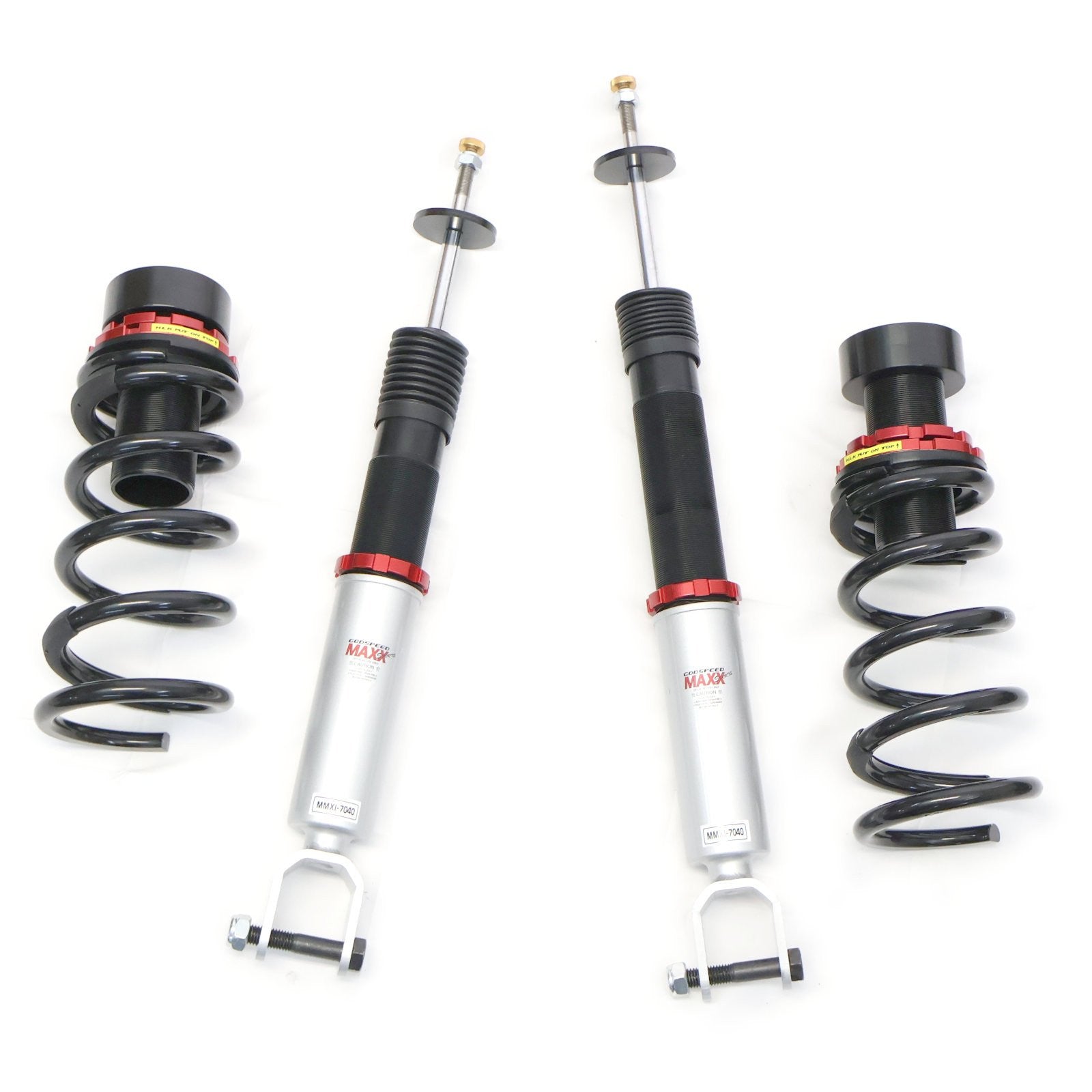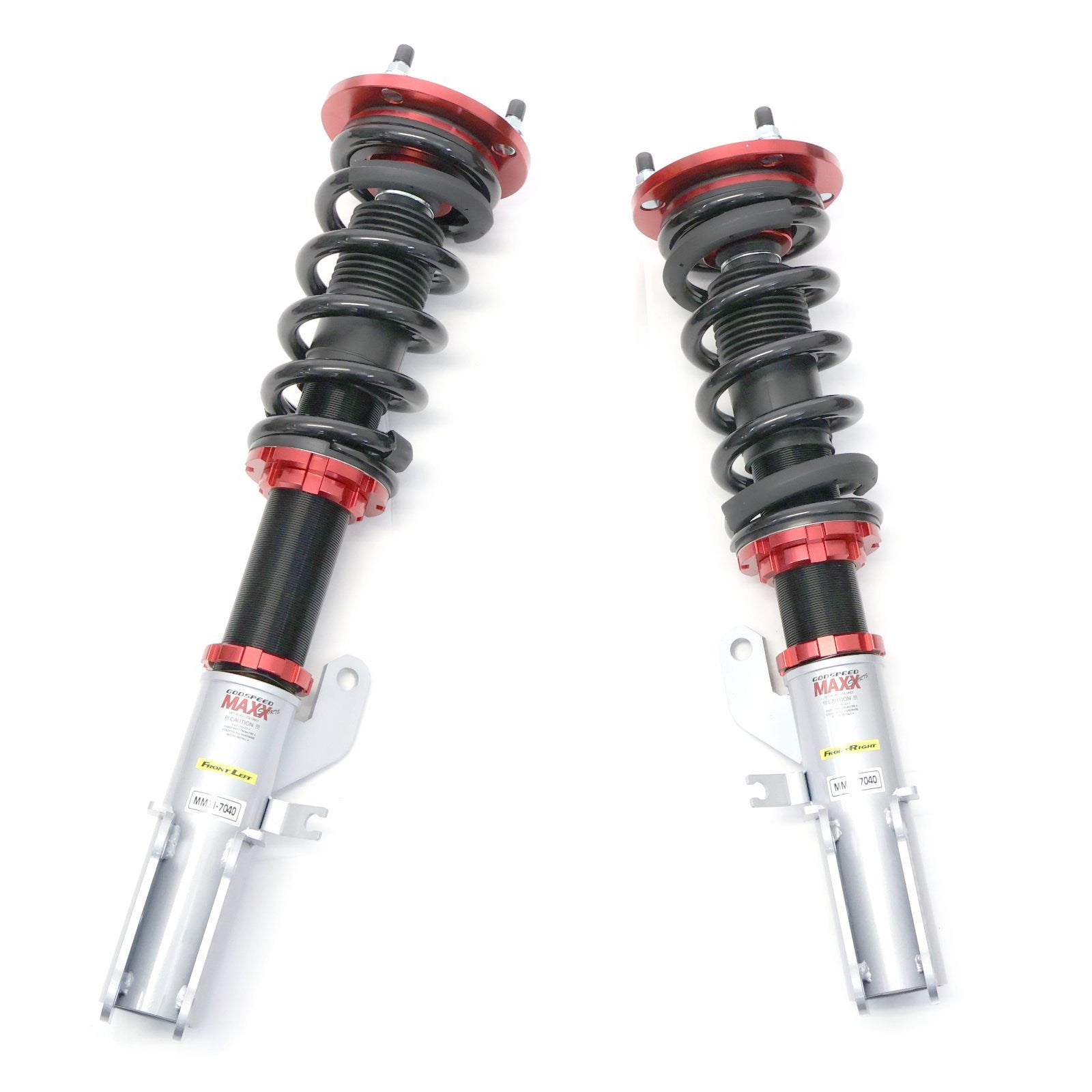Equipped with Pillow Ball Top Mounts, the MAXX coilovers provide precise feedback from the suspension, giving you better control over your vehicle's dynamics. The high-rigidity SAE9252 steel coil springs ensure quicker steering and a more responsive ride, making every turn and corner feel more controlled. Plus, the CNC billet aluminum hardware keeps the weight down without sacrificing strength, optimizing overall performance.