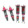 The Godspeed Project MAXX coilovers are for the tuners that want a track oriented setup that also provides daily commute comfort. With 40 levels of damping valve adjustment, you can easily adjust from stiff to soft simply by twisting the knob. Featuring mono-tube design with large capacity 52 mm dia. JIS seamless carbon steel shock body filled with IP F.A. 5W damper oil with properly valved 44 mm internal pistons to endurance competitiveness on a track course or daily spirited driving on public road. Cold wound springs are made from high tensile SAE9252 steel to ensure durability. Vehicle ride heights are adjusted with lower brackets to offer maximum shock travel in order to provide comfort compared to lowering springs alone. Mostly billet aluminum hardware accessories are used for its weight saving property in order to reduced overall weight of the coil-over system yet remain durable. All parts are replaceable and most importantly shock absorbers can be rebuild for customization or simply purchase replacement cartridge without spending too much for complete new coil-over system. You will experience quicker response times, improved bump absorption and increase grip to increase the safety when pushing your car to the limit!Improved Springs Rate To Help Ride Handling And Response