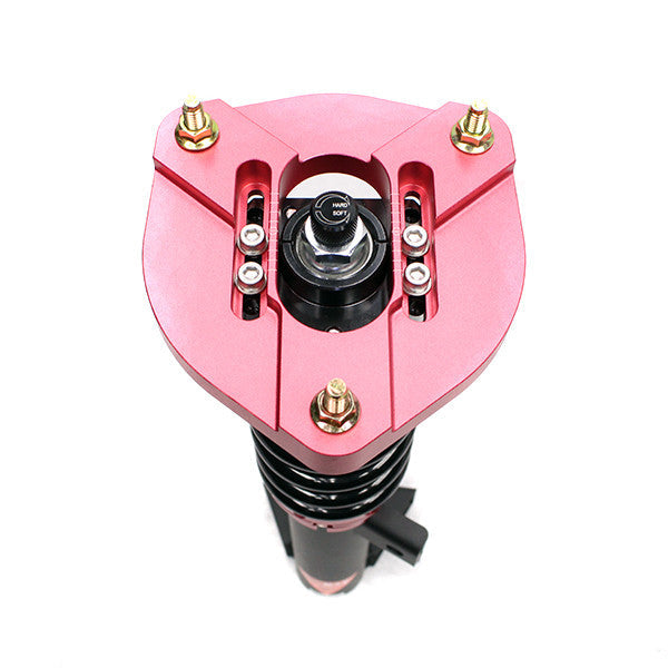 The Godspeed Project MAXX coilovers are for the tuners that want a track oriented setup that also provides daily commute comfort. With 40 levels of damping valve adjustment, you can easily adjust from stiff to soft simply by twisting the knob. Featuring mono-tube design with large capacity 52 mm dia. JIS seamless carbon steel shock body filled with IP F.A. 5W damper oil with properly valved 44 mm internal pistons to endurance competitiveness on a track course or daily spirited driving on public road. Cold wound springs are made from high tensile SAE9252 steel to ensure durability. Vehicle ride heights are adjusted with lower brackets to offer maximum shock travel in order to provide comfort compared to lowering springs alone. Mostly billet aluminum hardware accessories are used for its weight saving property in order to reduced overall weight of the coil-over system yet remain durable. All parts are replaceable and most importantly shock absorbers can be rebuild for customization or simply purchase replacement cartridge without spending too much for complete new coil-over system. You will experience quicker response times, improved bump absorption and increase grip to increase the safety when pushing your car to the limit!Improved Springs Rate To Help Ride Handling And Response