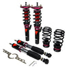 The Godspeed Project MAXX coilovers are for the tuners that want a track oriented setup that also provides daily commute comfort. With 40 levels of damping valve adjustment, you can easily adjust from stiff to soft simply by twisting the knob. Featuring mono-tube design with large capacity 52 mm dia. JIS seamless carbon steel shock body filled with IP F.A. 5W damper oil with properly valved 44 mm internal pistons to endurance competitiveness on a track course or daily spirited driving on public road. Cold wound springs are made from high tensile SAE9252 steel to ensure durability. Vehicle ride heights are adjusted with lower brackets to offer maximum shock travel in order to provide comfort compared to lowering springs alone. Mostly billet aluminum hardware accessories are used for its weight saving property in order to reduced overall weight of the coil-over system yet remain durable. All parts are replaceable and most importantly shock absorbers can be rebuild for customization or simply purchase replacement cartridge without spending too much for complete new coil-over system. You will experience quicker response times, improved bump absorption and increase grip to increase the safety when pushing your car to the limit!Improved Springs Rate To Help Ride Handling And Response