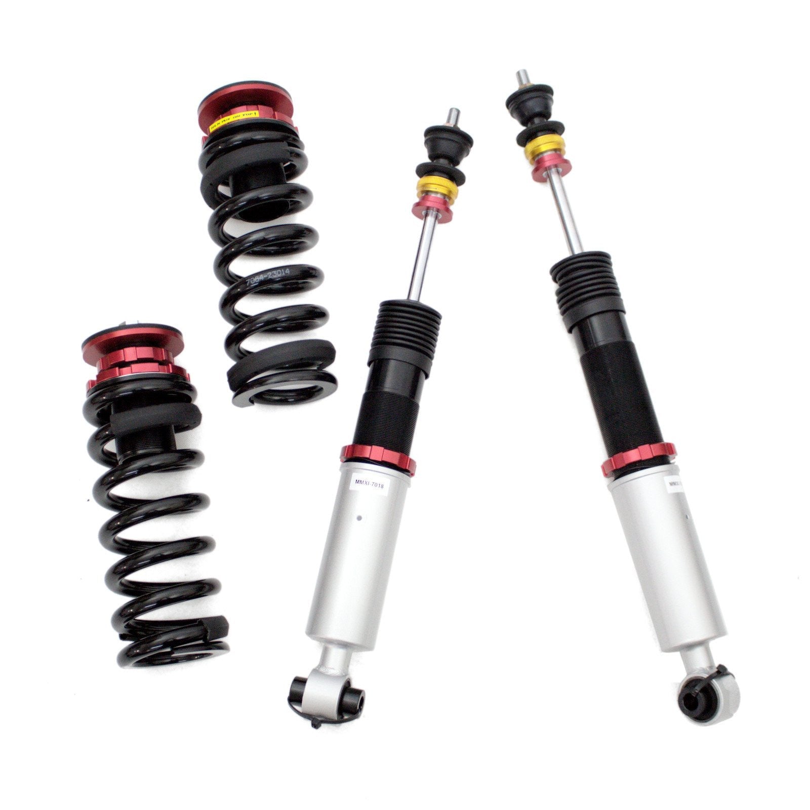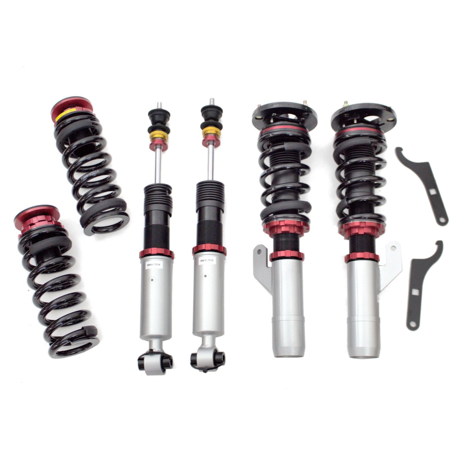 Godspeed Project's MAXX Sports line is engineered to be a more track-oriented coil-over system. Utilized "Inverted" mono-tube shocks to replace where MacPherson struts are used for better rigidity. All mono-tube shocks are finished with anti-corrosion coating and special valving that allows 20-level adjustments to control the rebound damping force. Pillow ball top mounts on four corners provide a far more precise feel from the suspension and steering. High-rigidity steel coil springs provide more control and quick steering to improve the vehicle's overall handling. Aluminum hardware is used where applicable to reduce overall weight.