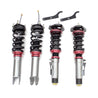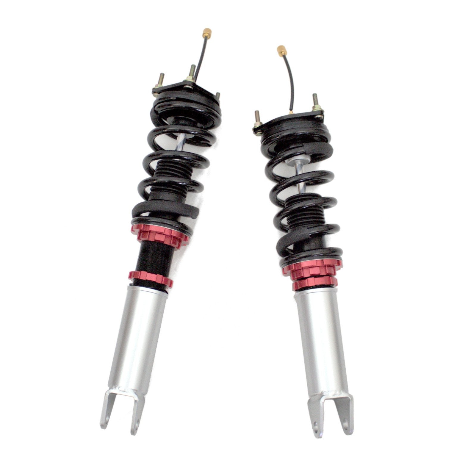 Godspeed Project's MAXX Sports line is engineered to be a more track-oriented coil-over system. Utilized "Inverted" mono-tube shocks to replace where MacPherson struts are used for better rigidity. All mono-tube shocks are finished with anti-corrosion coating and special valving that allows 20-level adjustments to control the rebound damping force. Pillow ball top mounts on four corners provide a far more precise feel from the suspension and steering. High-rigidity steel coil springs provide more control and quick steering to improve the vehicle's overall handling. Aluminum hardware is used where applicable to reduce overall weight.