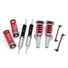 MonoRS Coilover damper kit by Godspeed Project are an intermediate suspension upgrade setup for daily and Sunday club racing. Lowering your car with improved springs over factory and paired with Monotube shocks with valving that allows 32 levels of rebound adjustment to improve handling without sacrifice comfort. Ride height can easily be adjusted by twisting the lower mount bracket. In order to keep weight gain at the minimum, most of attachments and accessories are CNC machined from billet aluminum. Koyo bearings are used when camber plate top mount is applicable depends on car models. To assure that our customers are getting high quality products, MonoRS coilovers are covered by 12 months limited warranty by the manufacturer from top to bottom just like other big brand name setups.