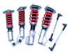 MonoRS Coilover damper kit by Godspeed Project are an intermediate suspension upgrade setup for daily and Sunday club racing. Lowering your car with improved springs over factory and paired with Monotube shocks with valving that allows 32 levels of rebound adjustment to improve handling without sacrifice comfort. Ride height can easily be adjusted by twisting the lower mount bracket. In order to keep weight gain at the minimum, most of attachments and accessories are CNC machined from billet aluminum. Koyo bearings are used when camber plate top mount is applicable depends on car models. To assure that our customers are getting high quality products, MonoRS coilovers are covered by 12 months limited warranty by the manufacturer from top to bottom just like other big brand name setups.