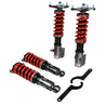 MonoRS Coilover damper kit by Godspeed Project are an intermediate suspension upgrade setup for daily and Sunday club racing. Lowering your car with improved springs over factory and paired with Monotube shocks with valving that allows 32 levels of rebound adjustment to improve handling without sacrifice comfort. Ride height can easily be adjusted by twisting the lower mount bracket. In order to keep weight gain at the minimum, most of attachments and accessories are CNC machined from billet aluminum. Koyo bearings are used when camber plate top mount is applicable depends on car models. To assure that our customers are getting high quality products, MonoRS coilovers are covered by 12 months limited warranty by the manufacturer from top to bottom just like other big brand name setups.