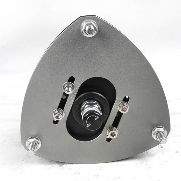 MonoRS Coilover damper kit by Godspeed Project are an intermediate suspension upgrade setup for daily and Sunday club racing. Lowering your car with improved springs over factory and paired with Monotube shocks with valving that allows 32 levels of rebound adjustment to improve handling without sacrifice comfort. Ride height can easily be adjusted by twisting the lower mount bracket. In order to keep weight gain at the minimum, most of attachments and accessories are CNC machined from billet aluminum. Koyo bearings are used when camber plate top mount is applicable depends on car models. To assure that our customers are getting high quality products, MonoRS coilovers are covered by 12 months limited warranty by the manufacturer from top to bottom just like other big brand name setups.