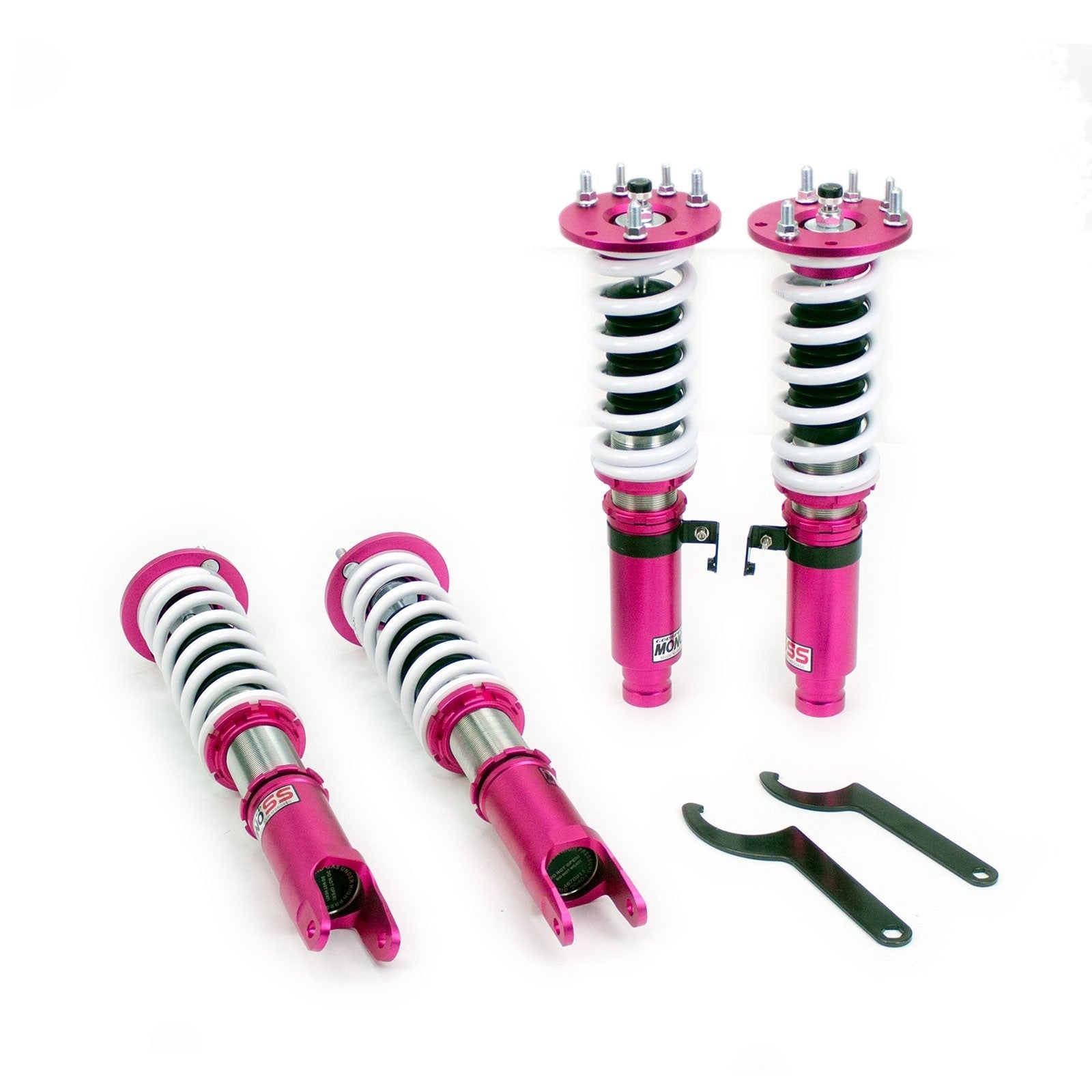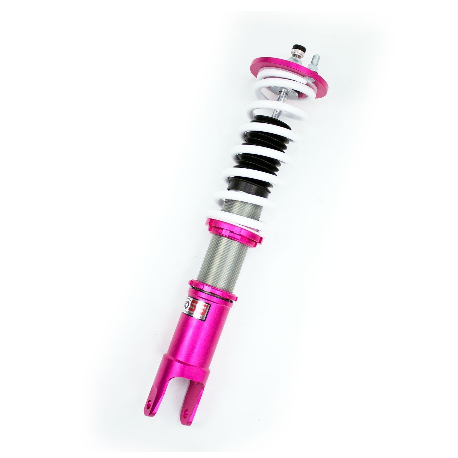 GodSpeed MonoSS coilovers are great entry level single adjustable coilovers. GodSpeed starts with a race coilover and tones it down for the street to give you an extremely capable coilover that you can comfortably use every day.  GodSpeed uses some of the best and most exotic components on the market such as a carbon seamless steel 52mm tube with a high performance internal shock piston that provides fast and precise damper response.  GodSpeed coilover springs are cold-bent from high strength SAE9252 steel to be comfortable and high performance.