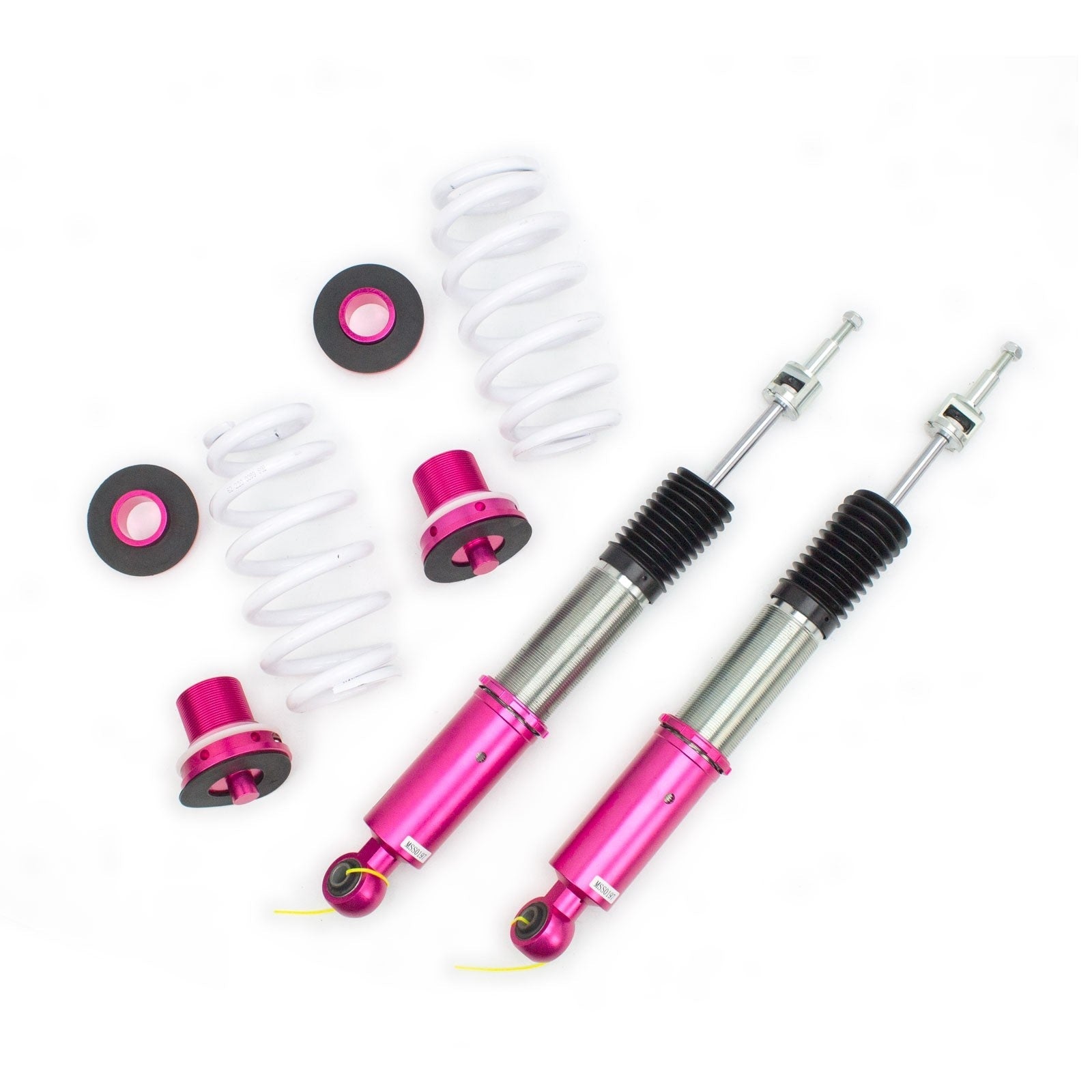 GodSpeed MonoSS coilovers are great entry level single adjustable coilovers. GodSpeed starts with a race coilover and tones it down for the street to give you an extremely capable coilover that you can comfortably use every day.  GodSpeed uses some of the best and most exotic components on the market such as a carbon seamless steel 52mm tube with a high performance internal shock piston that provides fast and precise damper response.  GodSpeed coilover springs are cold-bent from high strength SAE9252 steel to be comfortable and high performance.
