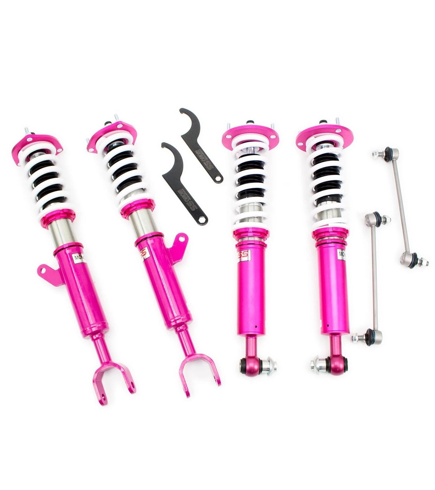 GodSpeed MonoSS coilovers are great entry level single adjustable coilovers. GodSpeed starts with a race coilover and tones it down for the street to give you an extremely capable coilover that you can comfortably use every day.  GodSpeed uses some of the best and most exotic components on the market such as a carbon seamless steel 52mm tube with a high performance internal shock piston that provides fast and precise damper response.  GodSpeed coilover springs are cold-bent from high strength SAE9252 steel to be comfortable and high performance.