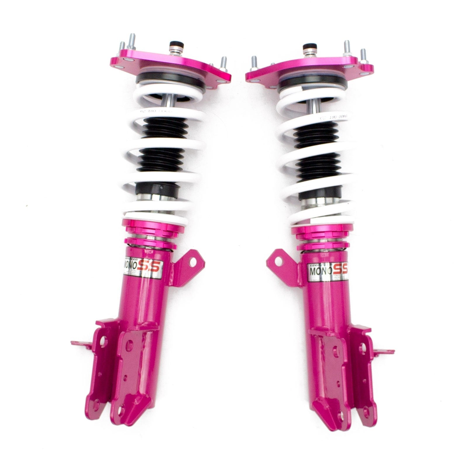 GodSpeed MonoSS coilovers are great entry level single adjustable coilovers. GodSpeed starts with a race coilover and tones it down for the street to give you an extremely capable coilover that you can comfortably use every day.  GodSpeed uses some of the best and most exotic components on the market such as a carbon seamless steel 52mm tube with a high performance internal shock piston that provides fast and precise damper response.  GodSpeed coilover springs are cold-bent from high strength SAE9252 steel to be comfortable and high performance.