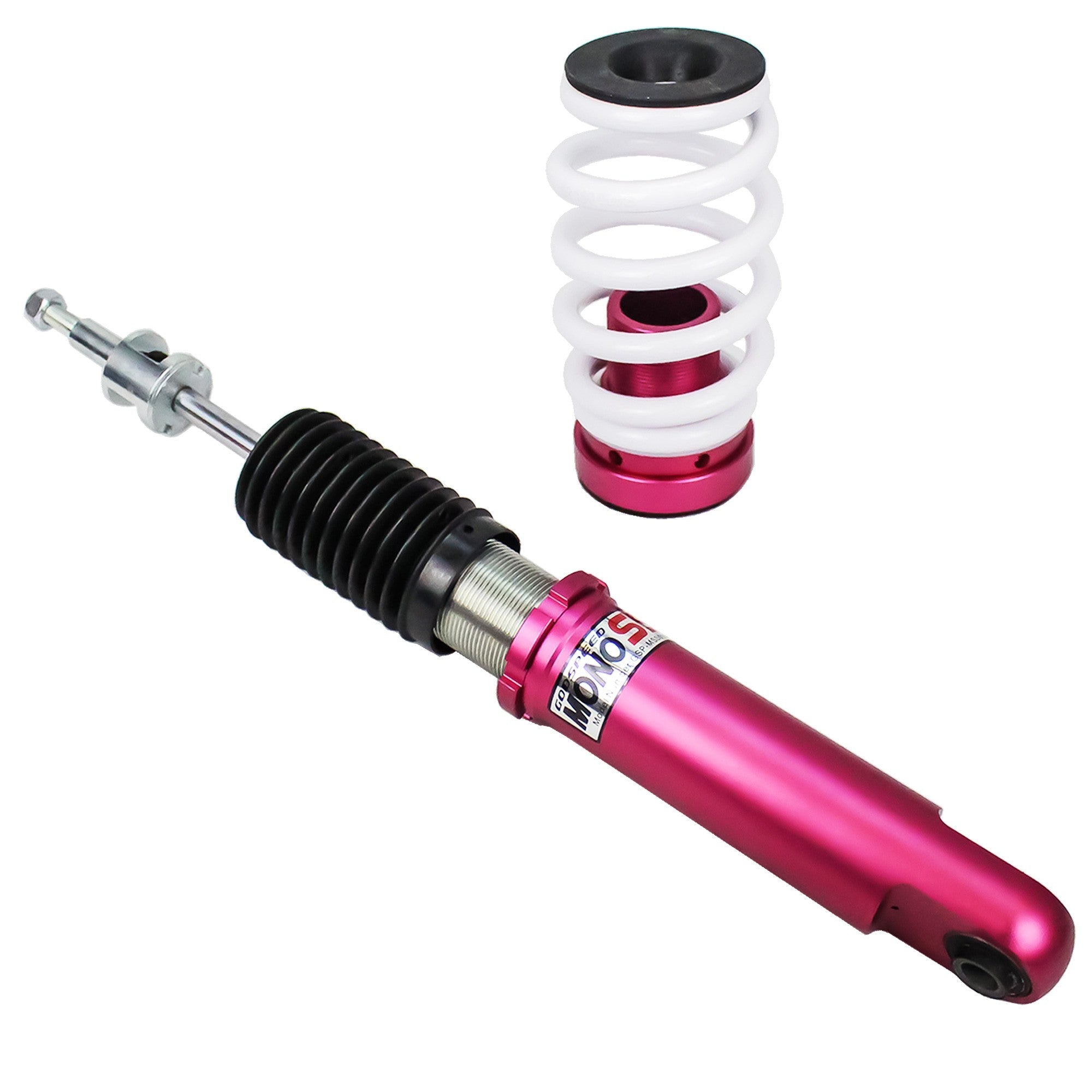 GodSpeed MonoSS coilovers are great entry level single adjustable coilovers. GodSpeed starts with a race coilover and tones it down for the street to give you an extremely capable coilover that you can comfortably use every day. GodSpeed uses some of the best and most exotic components on the market such as a carbon seamless steel 52mm tube with a high performance internal shock piston that provides fast and precise damper response. GodSpeed coilover springs are cold-bent from high strength SAE9252 steel to be comfortable and high performance.