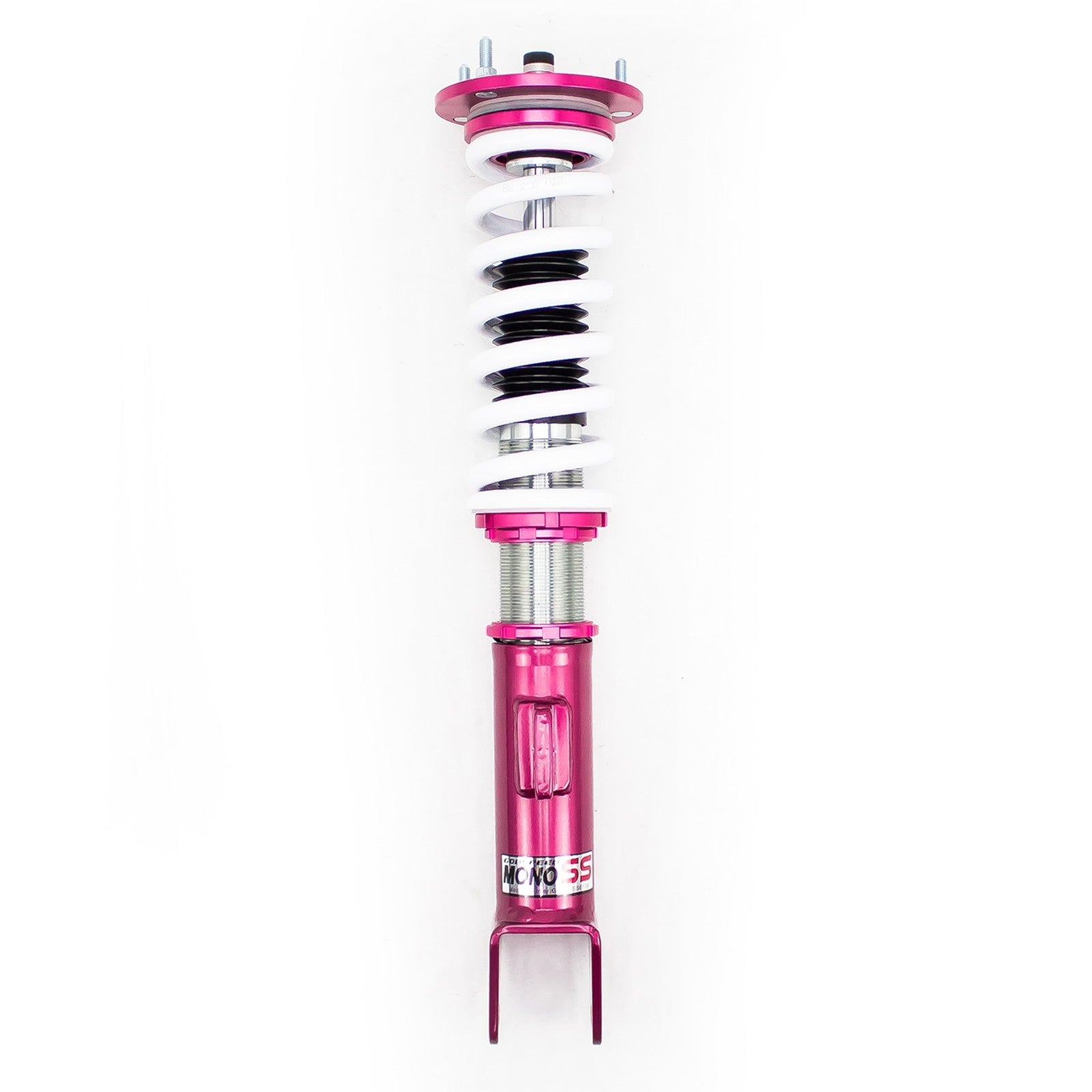 GodSpeed MonoSS coilovers are great entry level single adjustable coilovers. GodSpeed starts with a race coilover and tones it down for the street to give you an extremely capable coilover that you can comfortably use every day. GodSpeed uses some of the best and most exotic components on the market such as a carbon seamless steel 52mm tube with a high performance internal shock piston that provides fast and precise damper response. GodSpeed coilover springs are cold-bent from high strength SAE9252 steel to be comfortable and high performance.