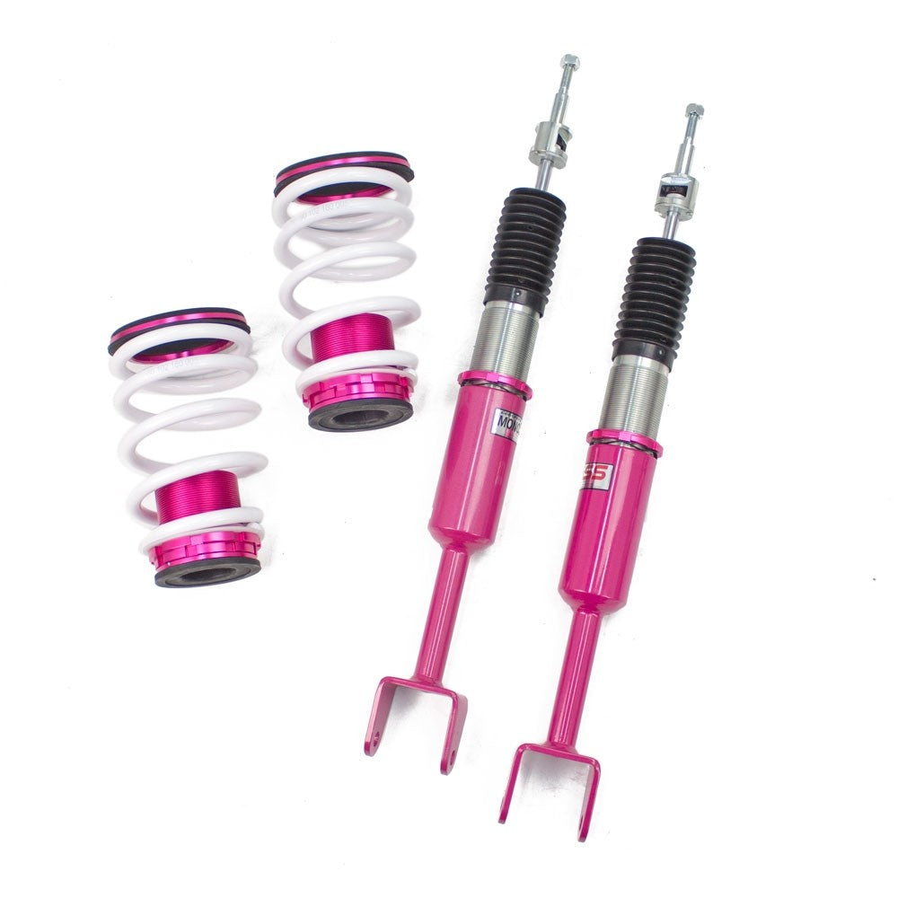 GodSpeed MonoSS coilovers are great entry level single adjustable coilovers. GodSpeed starts with a race coilover and tones it down for the street to give you an extremely capable coilover that you can comfortably use every day.  GodSpeed uses some of the best and most exotic components on the market such as a carbon seamless steel 52mm tube with a high performance internal shock piston that provides fast and precise damper response.  GodSpeed coilover springs are cold-bent from high strength SAE9252 steel to be comfortable and high performance.