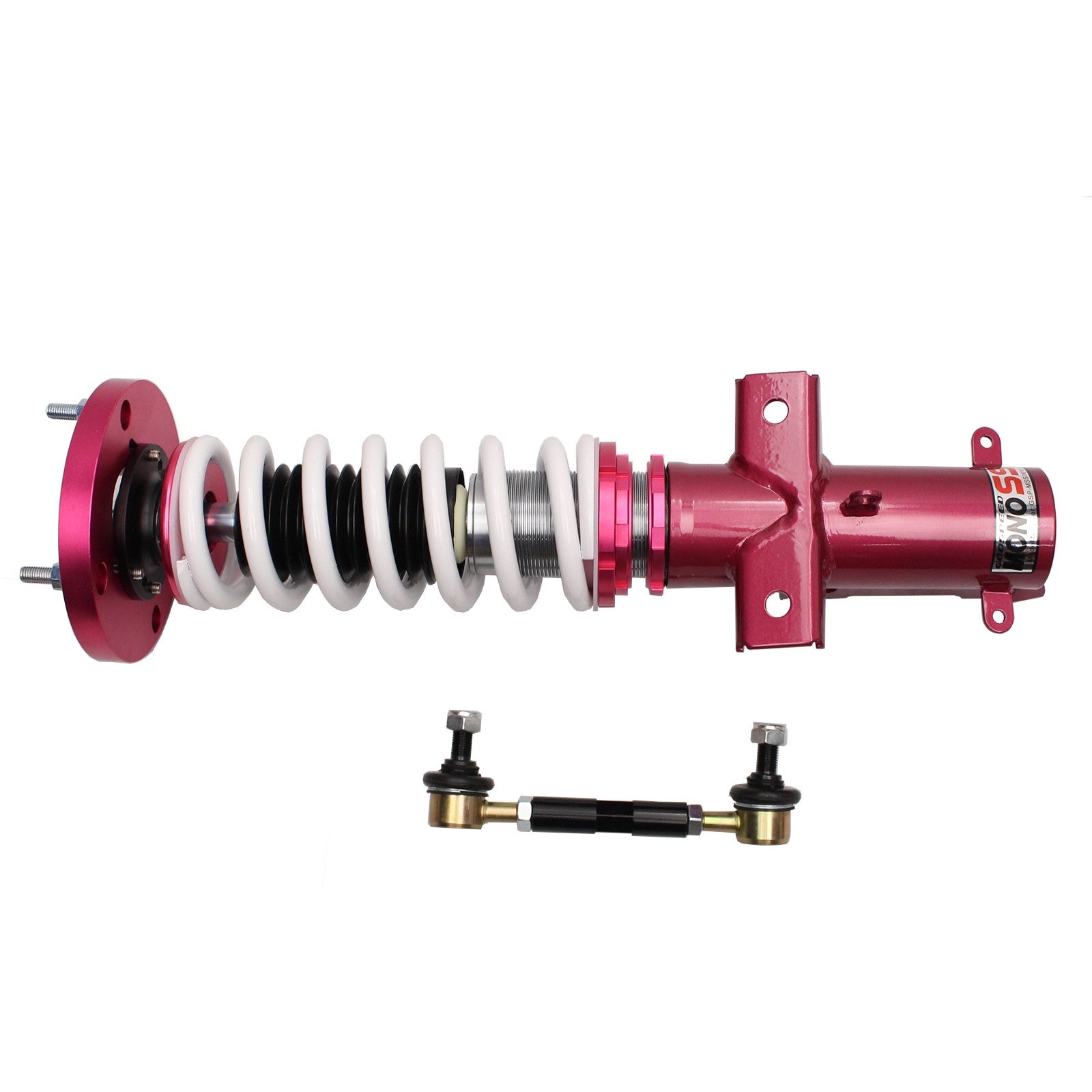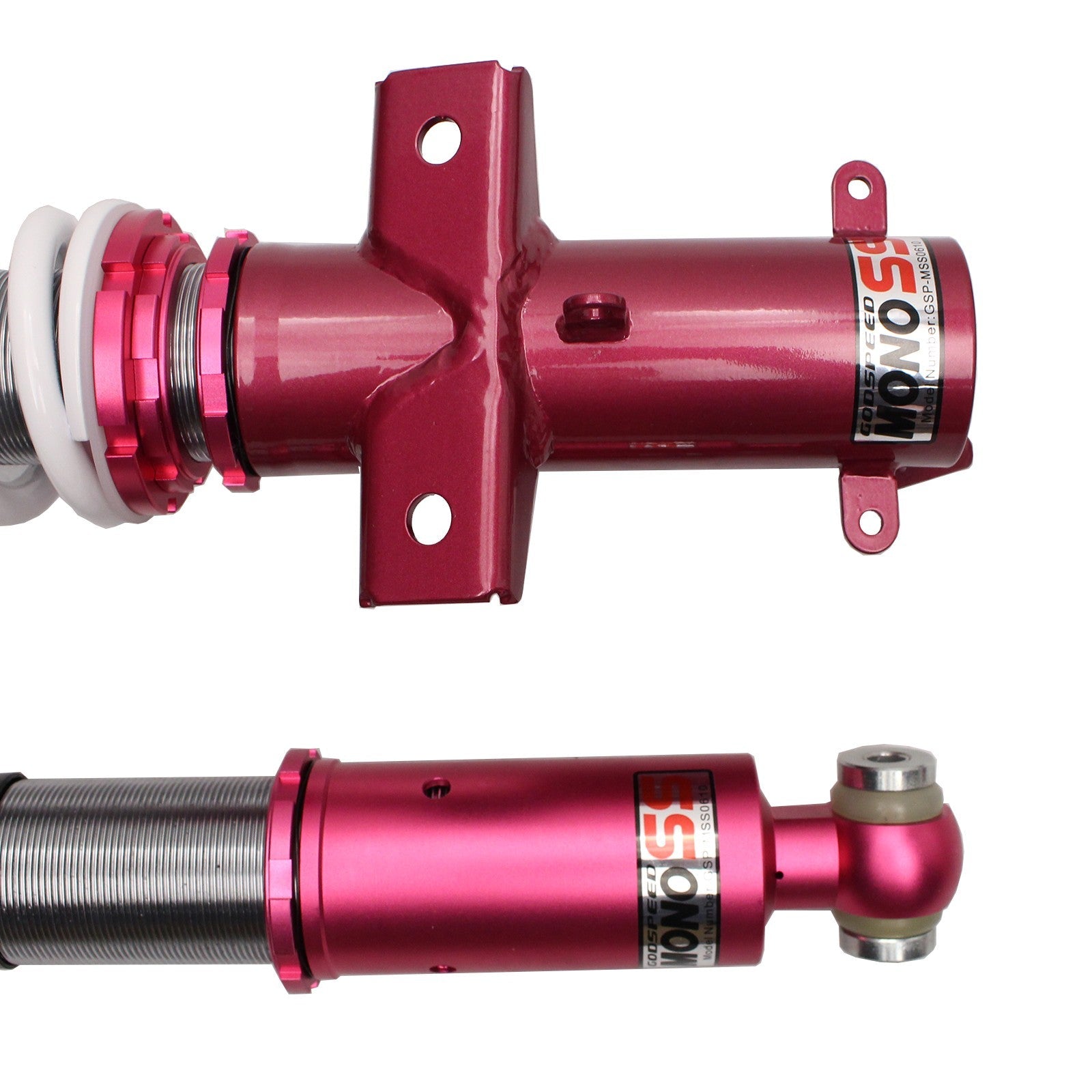 GodSpeed MonoSS coilovers are great entry level single adjustable coilovers. GodSpeed starts with a race coilover and tones it down for the street to give you an extremely capable coilover that you can comfortably use every day.  GodSpeed uses some of the best and most exotic components on the market such as a carbon seamless steel 52mm tube with a high performance internal shock piston that provides fast and precise damper response.  GodSpeed coilover springs are cold-bent from high strength SAE9252 steel to be comfortable and high performance.