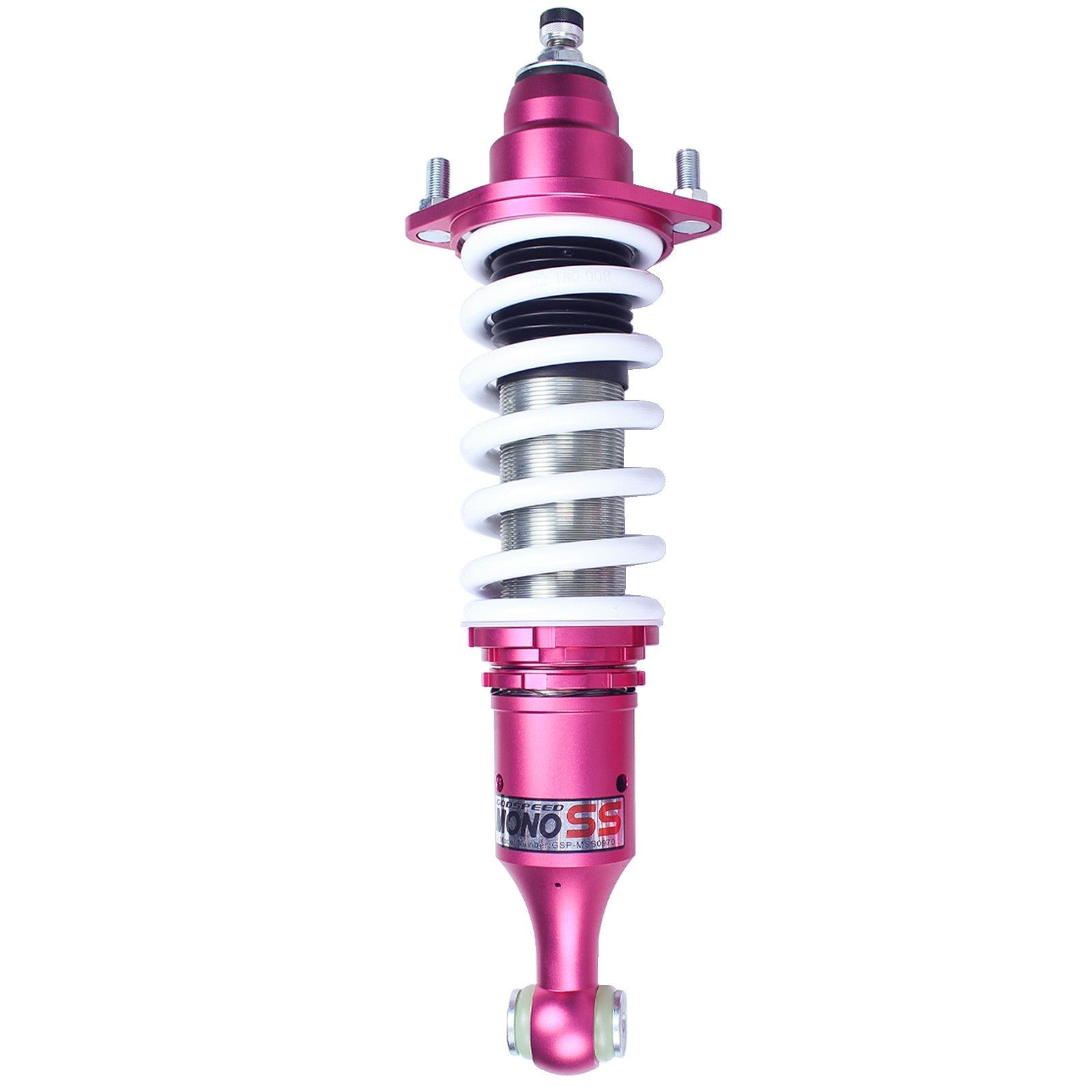 GodSpeed MonoSS coilovers are great entry level single adjustable coilovers. GodSpeed starts with a race coilover and tones it down for the street to give you an extremely capable coilover that you can comfortably use every day.  GodSpeed uses some of the best and most exotic components on the market such as a carbon seamless steel 52mm tube with a high performance internal shock piston that provides fast and precise damper response.  GodSpeed coilover springs are cold-bent from high strength SAE9252 steel to be comfortable and high performance.