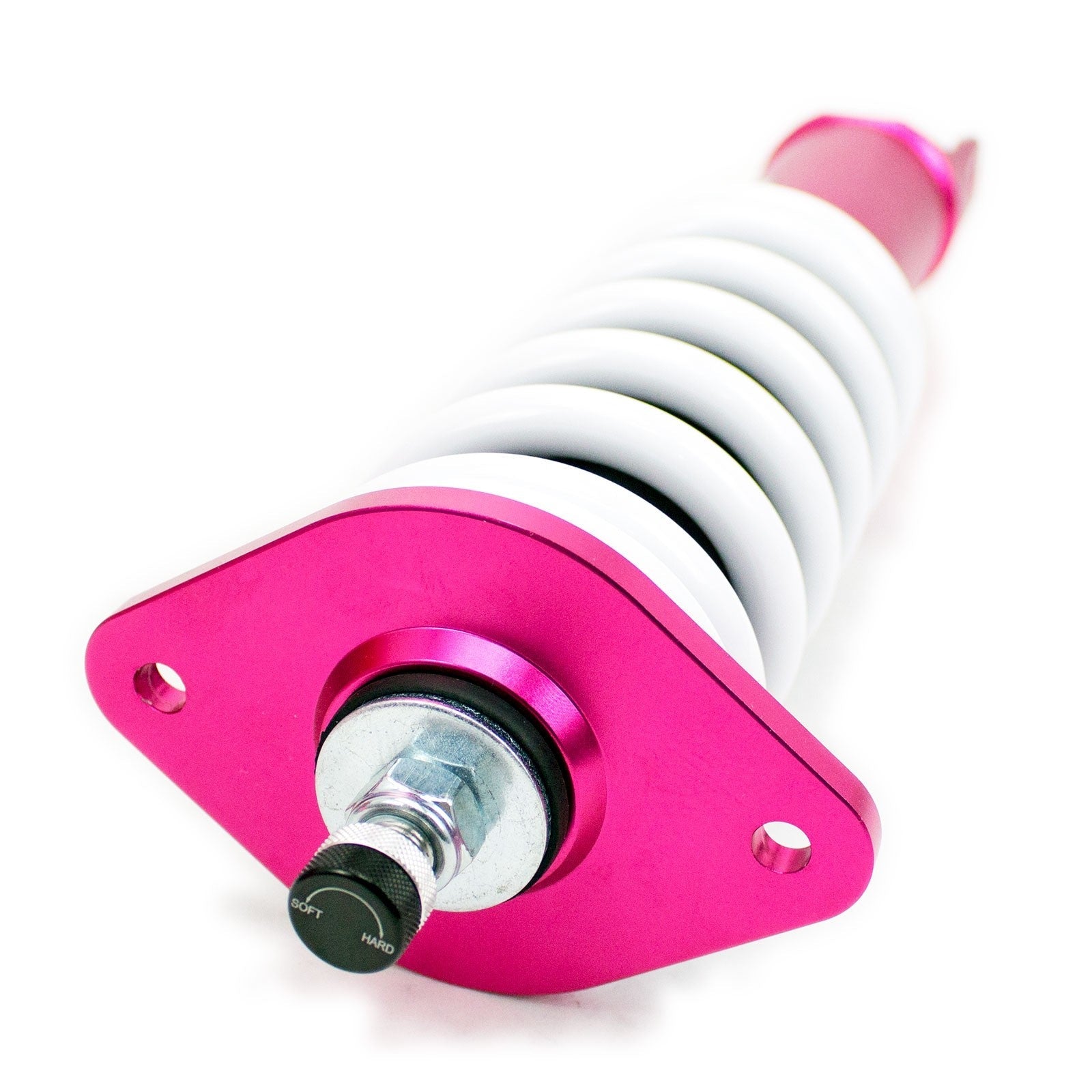 GodSpeed MonoSS coilovers are great entry level single adjustable coilovers. GodSpeed starts with a race coilover and tones it down for the street to give you an extremely capable coilover that you can comfortably use every day.  GodSpeed uses some of the best and most exotic components on the market such as a carbon seamless steel 52mm tube with a high performance internal shock piston that provides fast and precise damper response.  GodSpeed coilover springs are cold-bent from high strength SAE9252 steel to be comfortable and high performance.