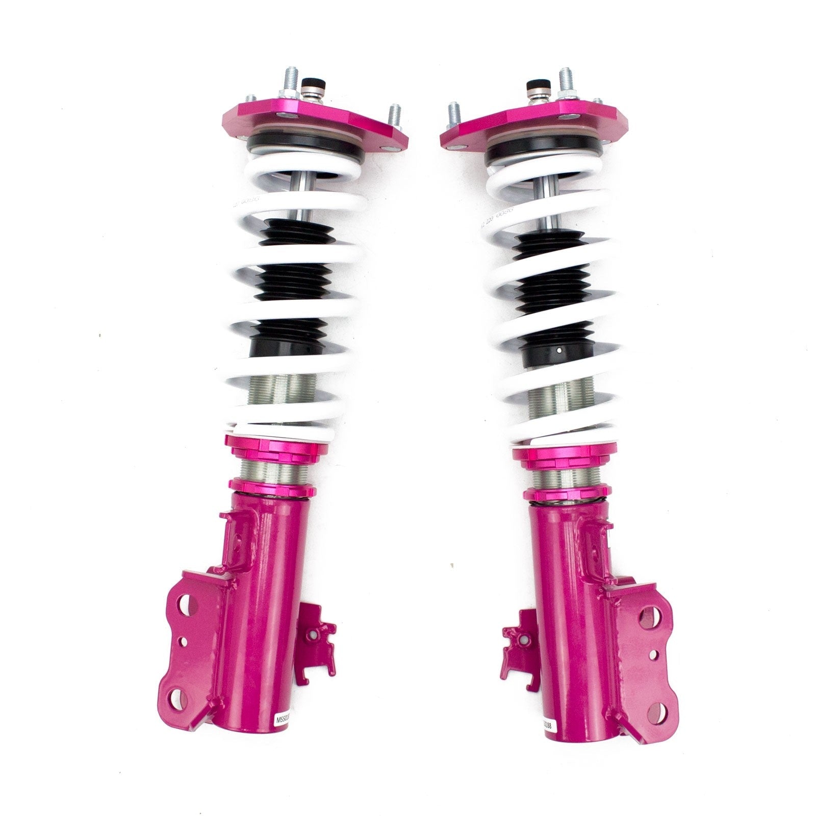 GodSpeed MonoSS coilovers are great entry level single adjustable coilovers. GodSpeed starts with a race coilover and tones it down for the street to give you an extremely capable coilover that you can comfortably use every day.  GodSpeed uses some of the best and most exotic components on the market such as a carbon seamless steel 52mm tube with a high performance internal shock piston that provides fast and precise damper response.  GodSpeed coilover springs are cold-bent from high strength SAE9252 steel to be comfortable and high performance.