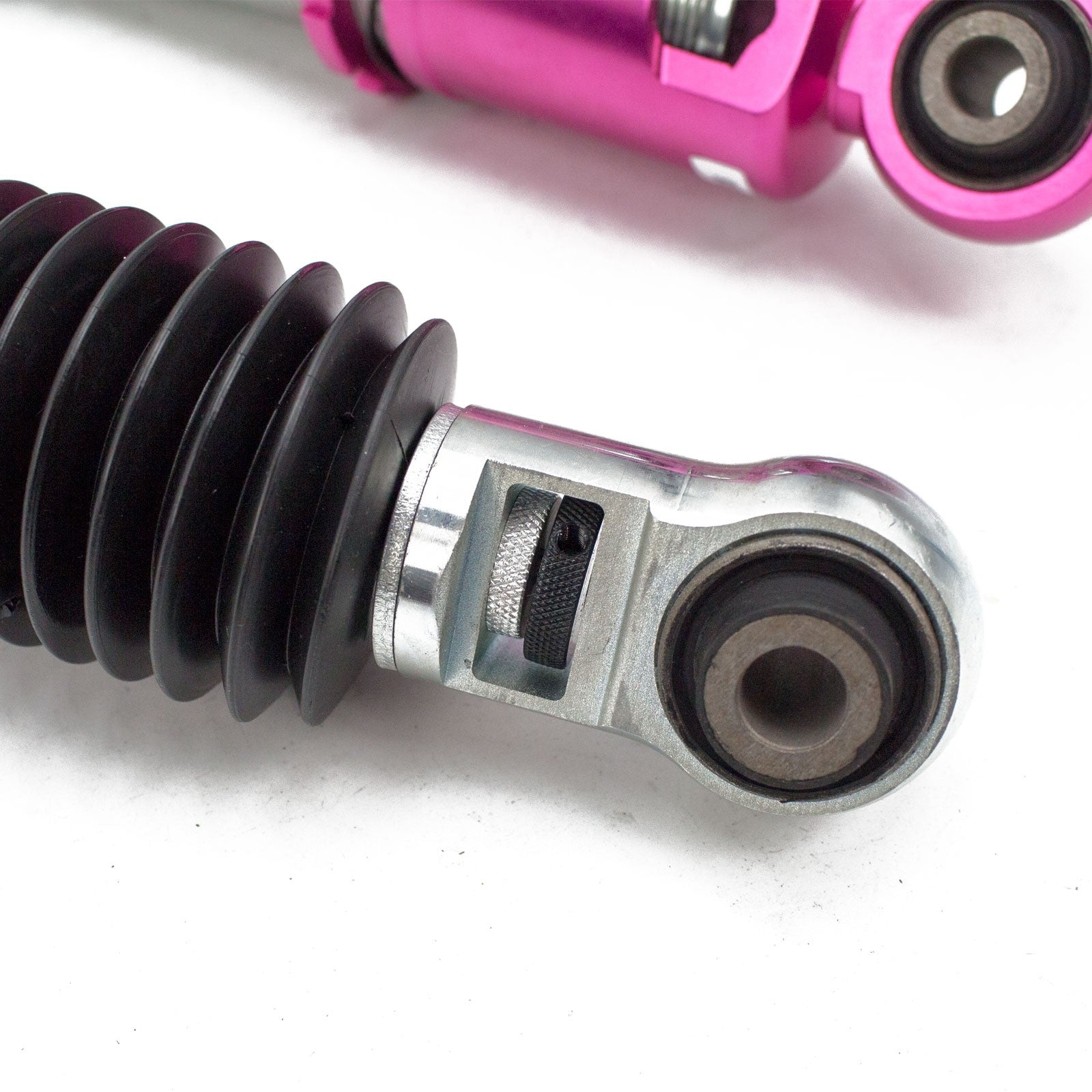 A big problem with a lot of entry level coilovers is that they use cheap shock oil, but GodSpeed doesn't follow that philosophy.  Race quality shock oil ensures exceptional damper performance any any temperature, on or off the track.  The GodSpeed coilover top hat uses a high performance Japanese KOYO 6204Z bearing pillowball mount (when applicable).  Bottom shock brackets are also top quality and made from T7075 forged aluminum or carbon steel brackets for light weight and durability.
