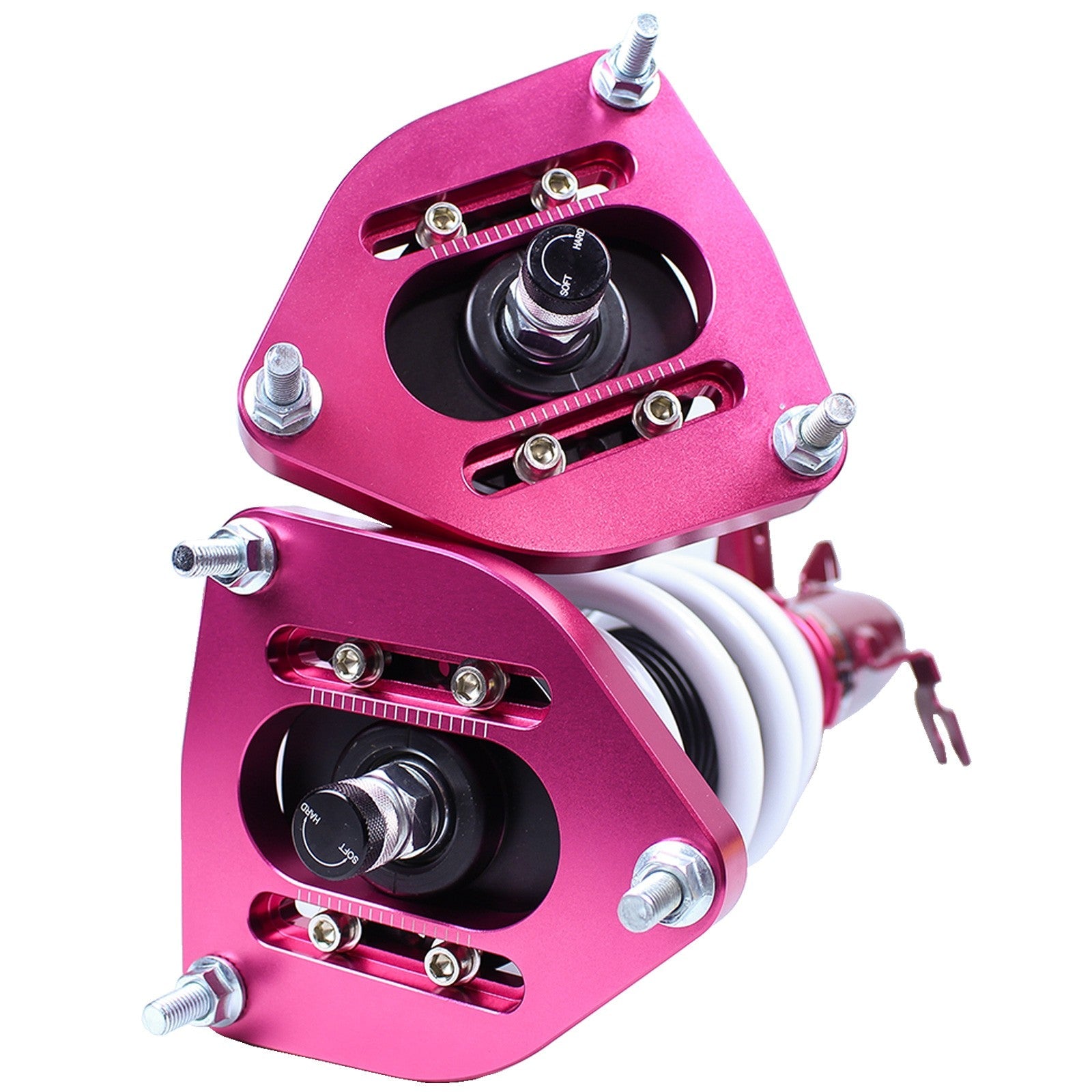 A big problem with a lot of entry level coilovers is that they use cheap shock oil, but GodSpeed doesn't follow that philosophy.  Race quality shock oil ensures exceptional damper performance any any temperature, on or off the track.  The GodSpeed coilover top hat uses a high performance Japanese KOYO 6204Z bearing pillowball mount (when applicable).  Bottom shock brackets are also top quality and made from T7075 forged aluminum or carbon steel brackets for light weight and durability.