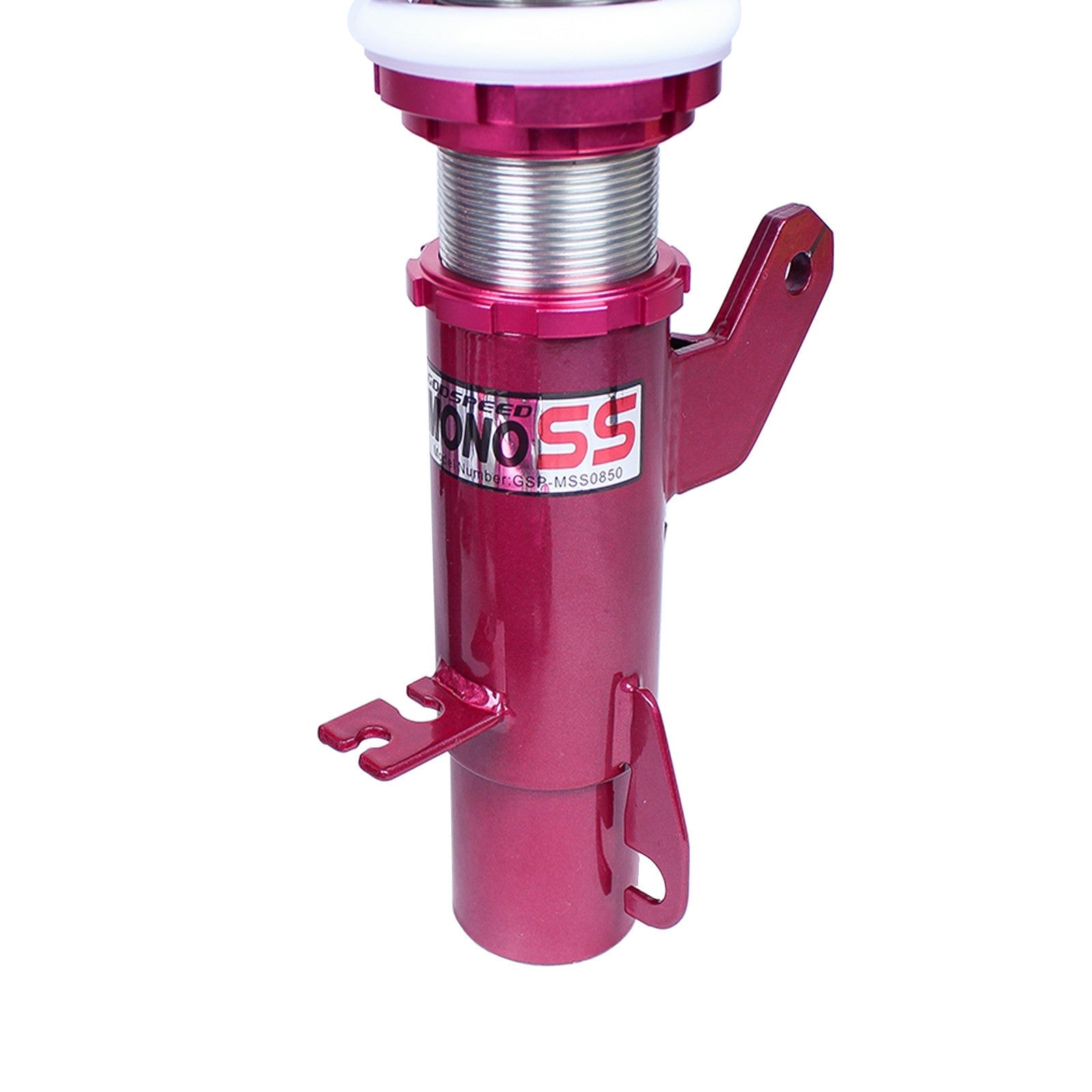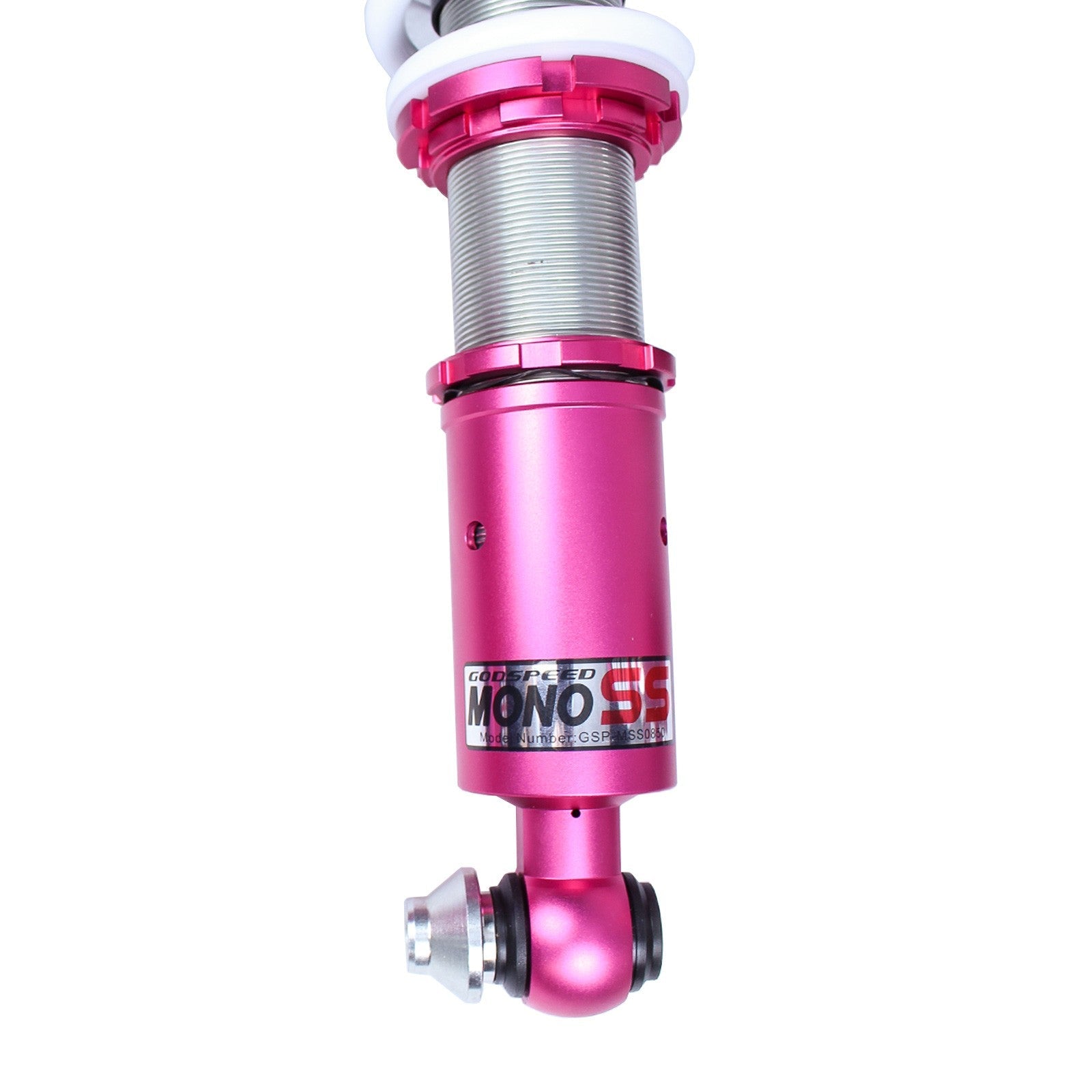 GodSpeed MonoSS coilovers are great entry level single adjustable coilovers. GodSpeed starts with a race coilover and tones it down for the street to give you an extremely capable coilover that you can comfortably use every day.  GodSpeed uses some of the best and most exotic components on the market such as a carbon seamless steel 52mm tube with a high performance internal shock piston that provides fast and precise damper response.  GodSpeed coilover springs are cold-bent from high strength SAE9252 steel to be comfortable and high performance.