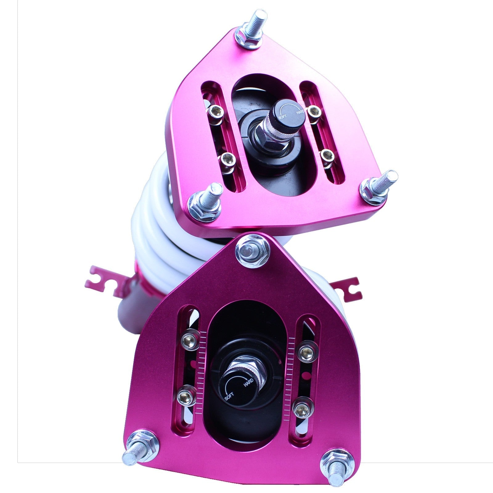 A big problem with a lot of entry level coilovers is that they use cheap shock oil, but GodSpeed doesn't follow that philosophy.  Race quality shock oil ensures exceptional damper performance any any temperature, on or off the track.  The GodSpeed coilover top hat uses a high performance Japanese KOYO 6204Z bearing pillowball mount (when applicable).  Bottom shock brackets are also top quality and made from T7075 forged aluminum or carbon steel brackets for light weight and durability.